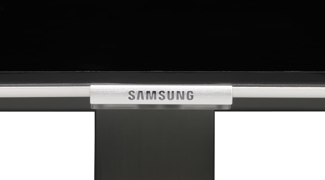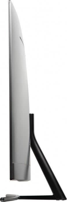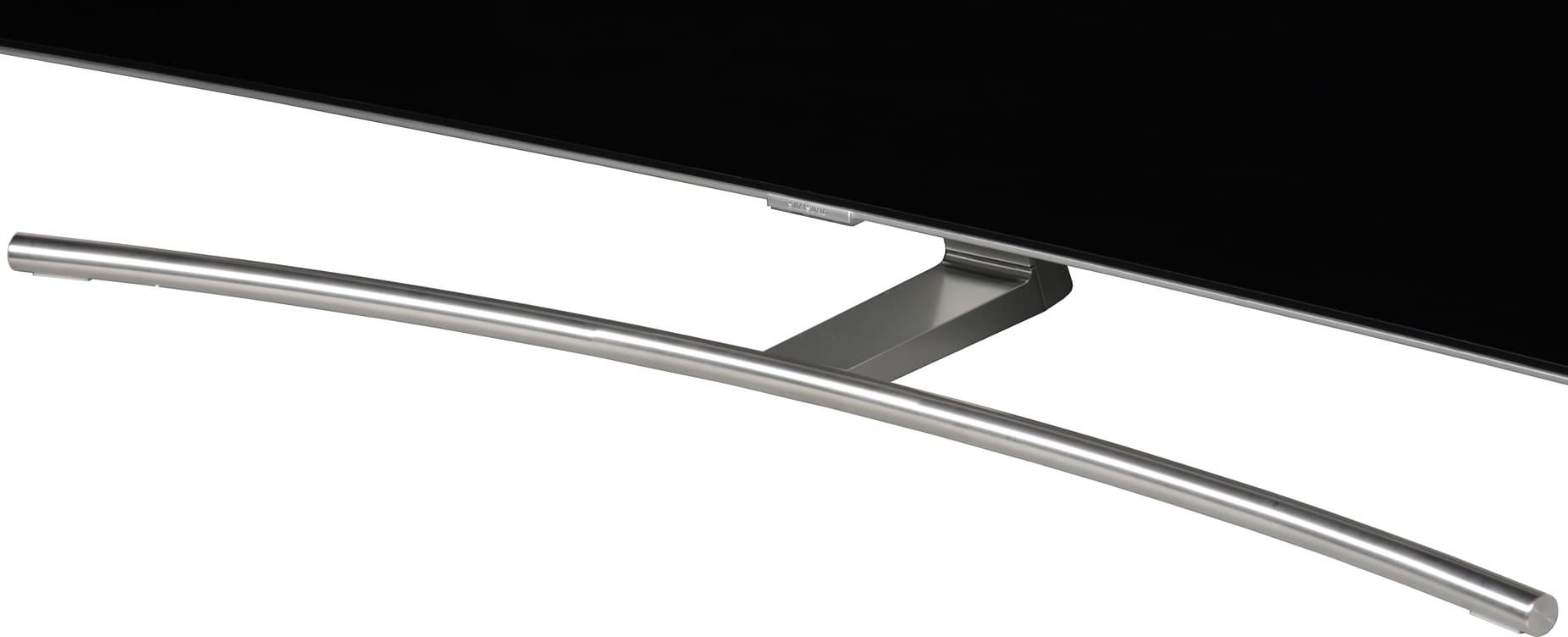 Дизайн строгий, но благодаря отходящей назад стойке подставки, тонкой изогнутой опоре спереди и условно безрамочному экрану смотрится телевизор элегантно, его экран как бы парит в воздухе. Сзади телевизор выглядит не менее аккуратно — так реализуется концепция "дизайна 360". Расчет на то, что с большой вероятностью данный телевизор с изогнутым экраном будет стоять на штатной подставке, при этом пользователю будет видно телевизор как спереди так, и сзади (не во время просмотра, разумеется). Впрочем, на сайте производителя есть примеры интерьеров, в которых этот телевизор повешен на стену. Передняя панель представляет собой монолитный лист стекла с тонким обрамлением из алюминиевого профиля без покрытия и с матовой поверхностью.