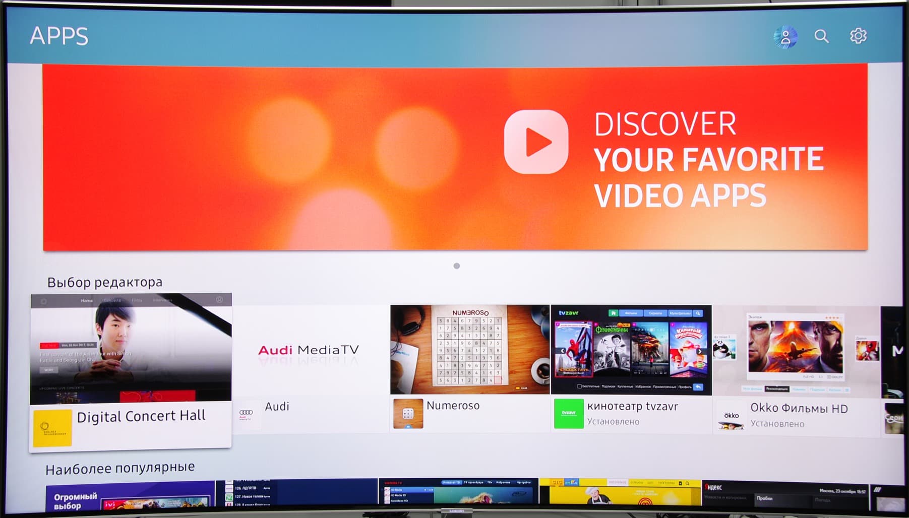 Программной платформой для этого ТВ все также служит открытая операционная система Tizen (а именно, версии 3.0), основанная на ядре Linux. Заглавная страница интерфейса представляет собой две горизонтальные ленты. Верхняя — с контекстным содержимым, например, с подписанными миниатюрами быстрых настроек, входов и устройств. На нижней ленте размещены плитки выбора содержимого верхней и плитки-миниатюры установленных программ.