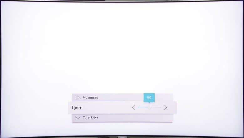 Непосредственно при регулировке параметров изображения на экран выводится уже только название настройки, ползунок и текущее значение или список вариантов, что облегчает оценку влияния этой настройки на изображение, при этом настройки с ползунками перебираются стрелками вверх и вниз.