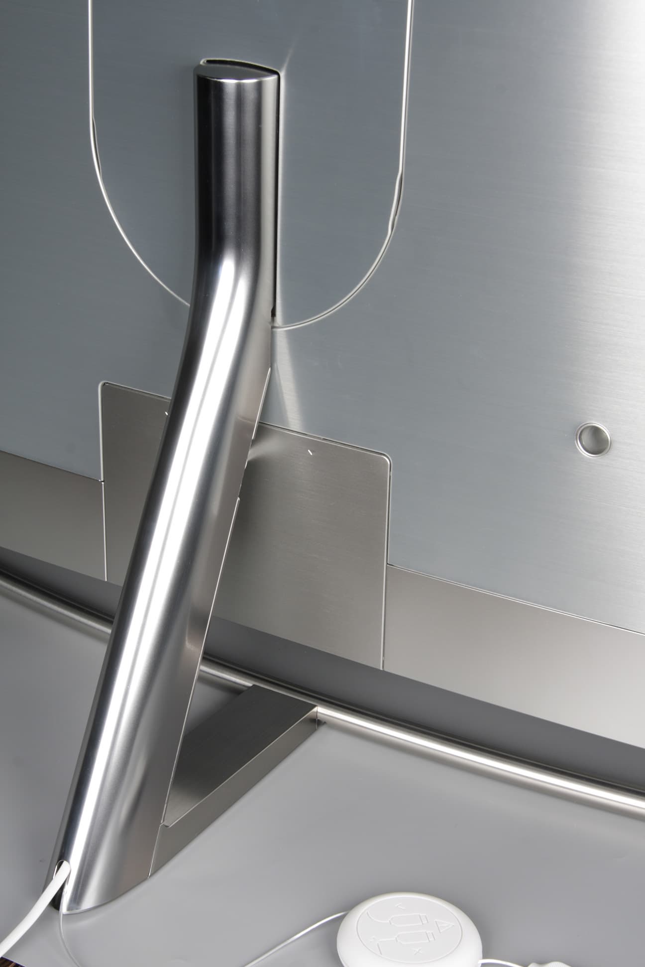 Передняя опорная дуга основания подставки изготовлена из нержавеющей стали со шлифованной, но не полированной поверхностью.
