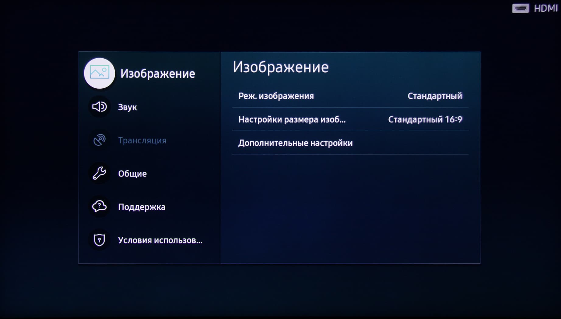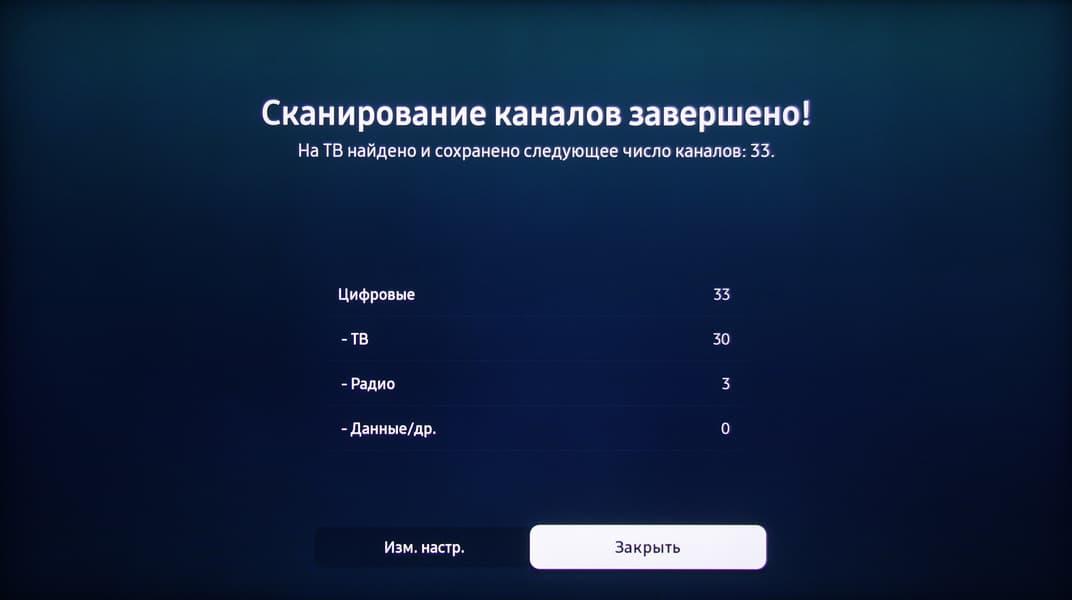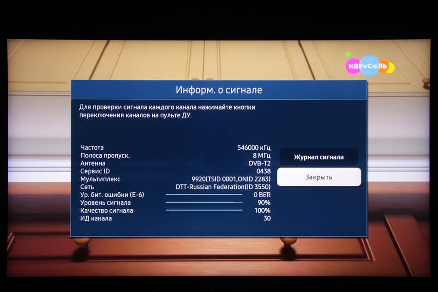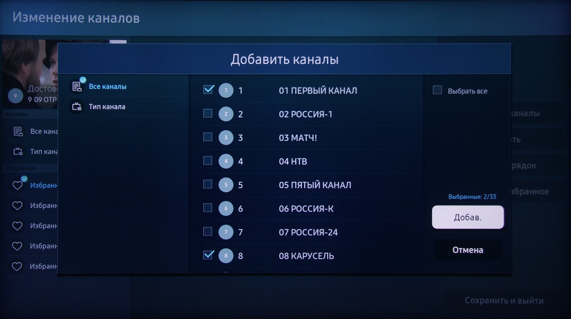 Меню с настройками ТВ занимает большую часть экрана, надписи в нем читаемые.