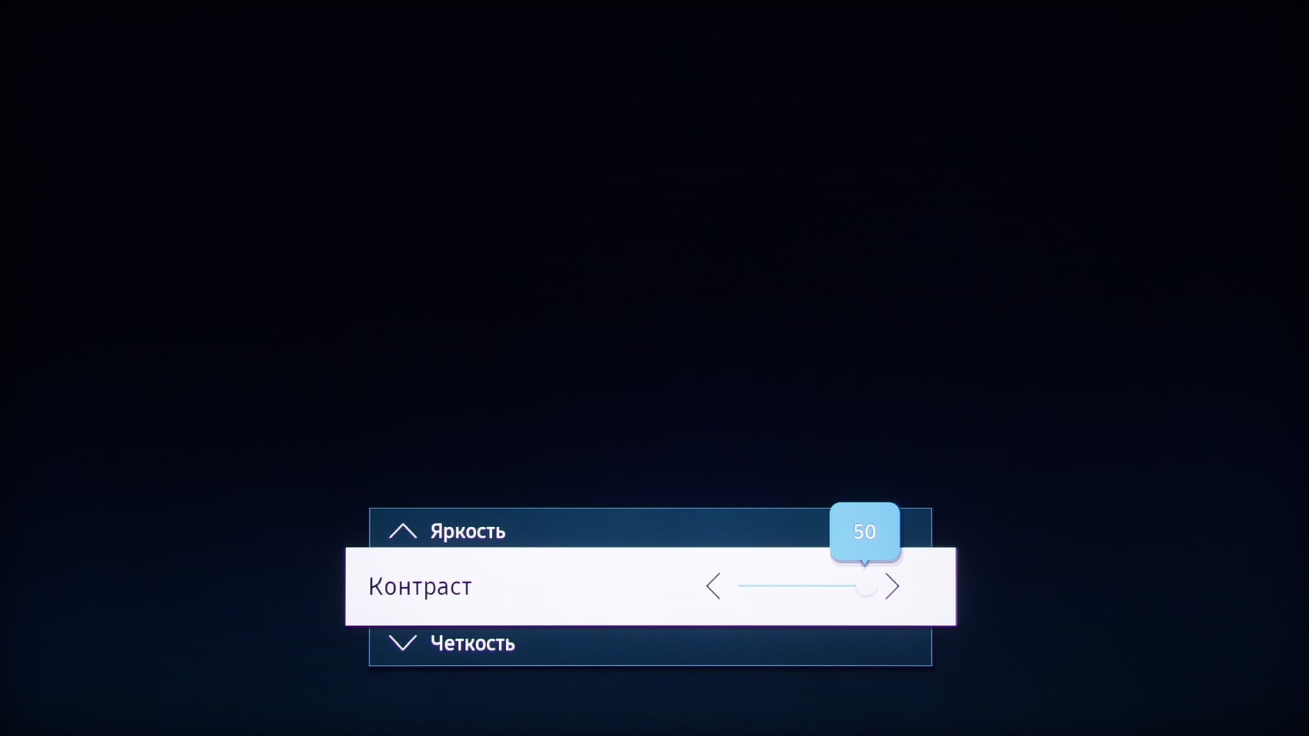 Есть русифицированный вариант интерфейса. Качество перевода хорошее. Непосредственно при регулировке параметров изображения на экран выводится уже только название настройки, ползунок и текущее значение или список вариантов, что облегчает оценку влияния этой настройки на изображение, при этом настройки с ползунками перебираются стрелками вверх и вниз.
