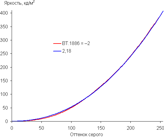 Аппроксимация полученной гамма-кривой дала показатель 2,18, что близко к стандартному значению 2,2. При этом реальная гамма-кривая немного отклоняется от аппроксимирующей степенной функции: