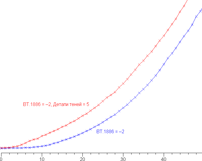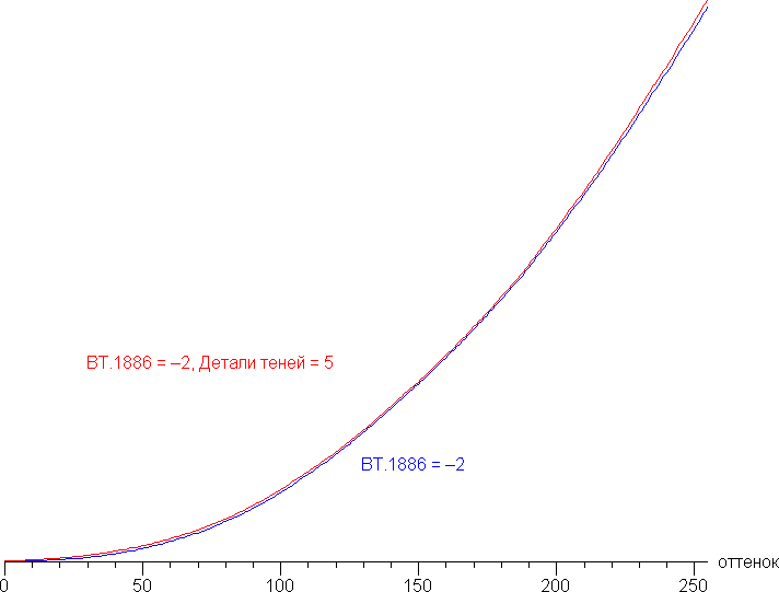 Видно, что уровень черного не меняется, изменяется только скорость роста яркости в тенях.