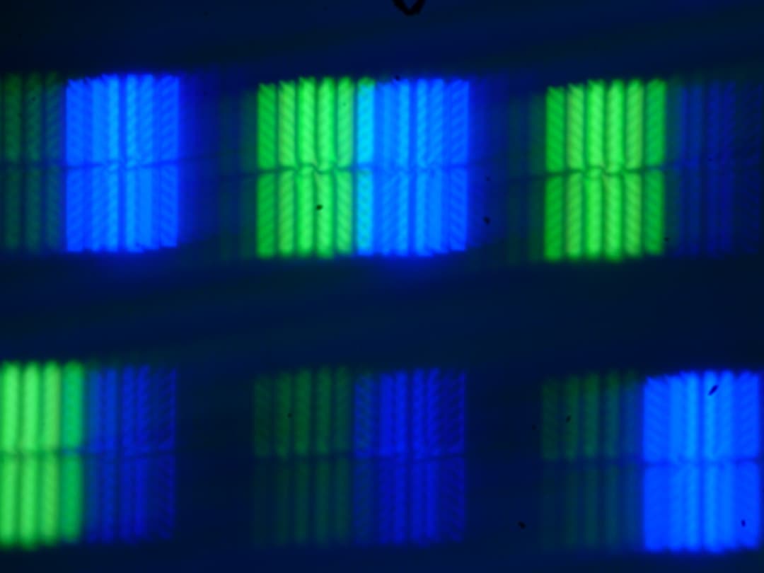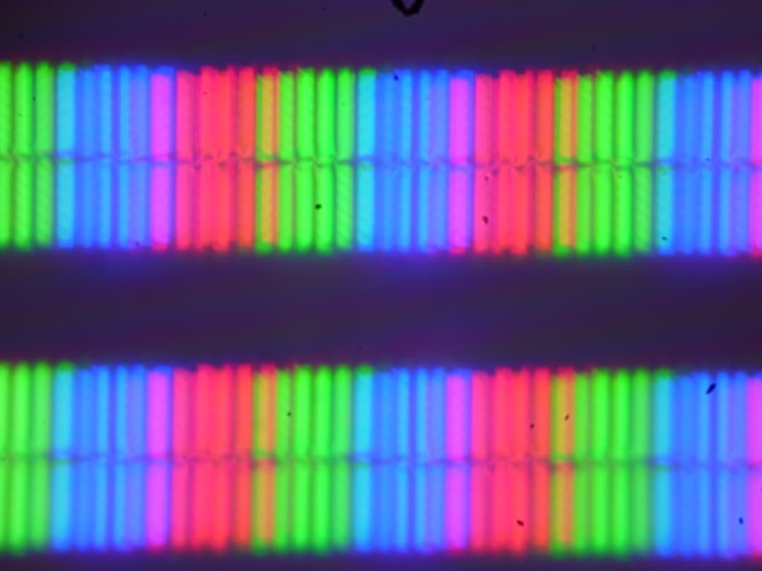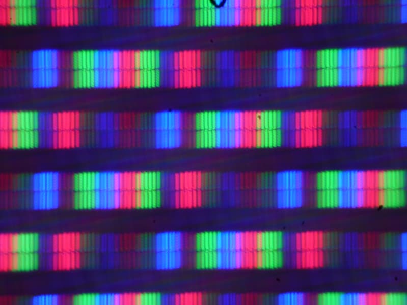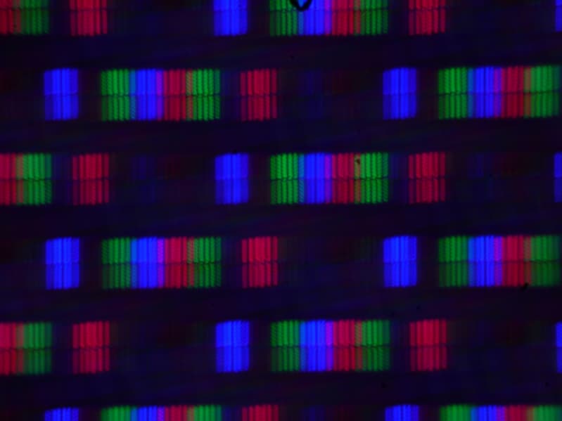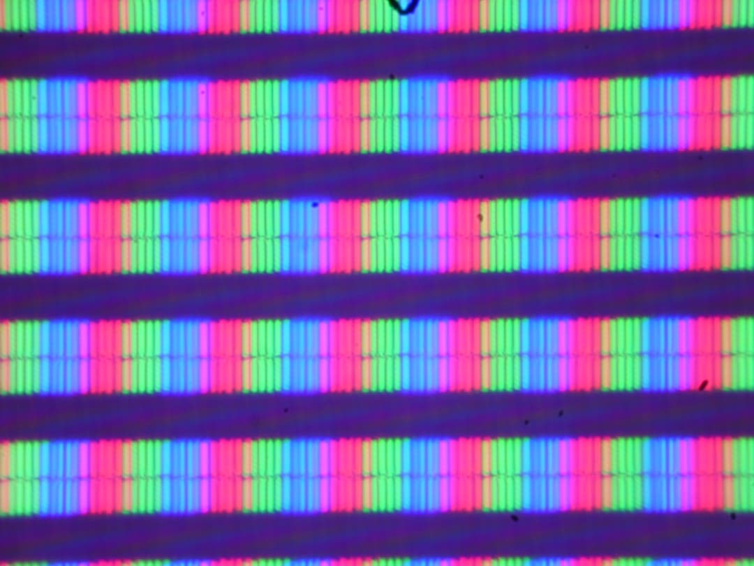 Изображения субпикселей трех цветов (красного, зеленого и синего) множатся и накладываются друг на друга преимущественно в горизонтальном направлении. Для достижения этого эффекта используется дополнительный слой с преломляющими оптическими элементами. Положительным следствием такого устройства экрана является увеличение углов обзора в горизонтальном направлении, а отрицательным — легкое размытие в пределах размера пикселя также по горизонтали. Субпиксели трех цветов (красного, зеленого и синего) поделены предположительно на четыре области с доменами в различающейся ориентации. Отметим, что никакого «кристаллического эффекта» (микроскопической вариации яркости и оттенка) в данном случае нет.
