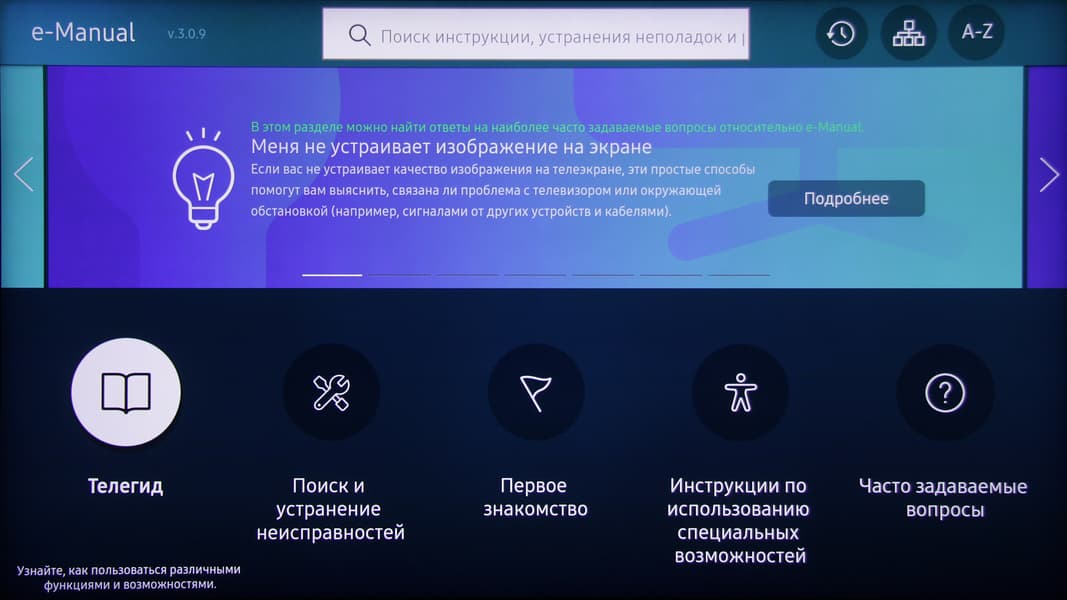 Также с сайта компании можно загрузить e-Manual в виде объемистого файла PDF. Руководство это весьма подробное (243 страницы), хотя местами не хватает информации относительно именно этой модели телевизора.