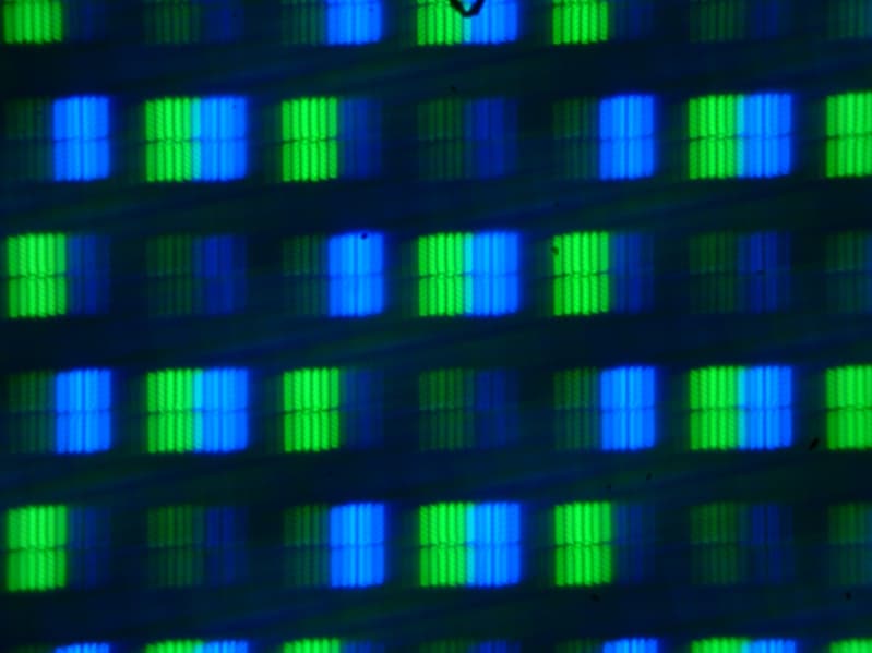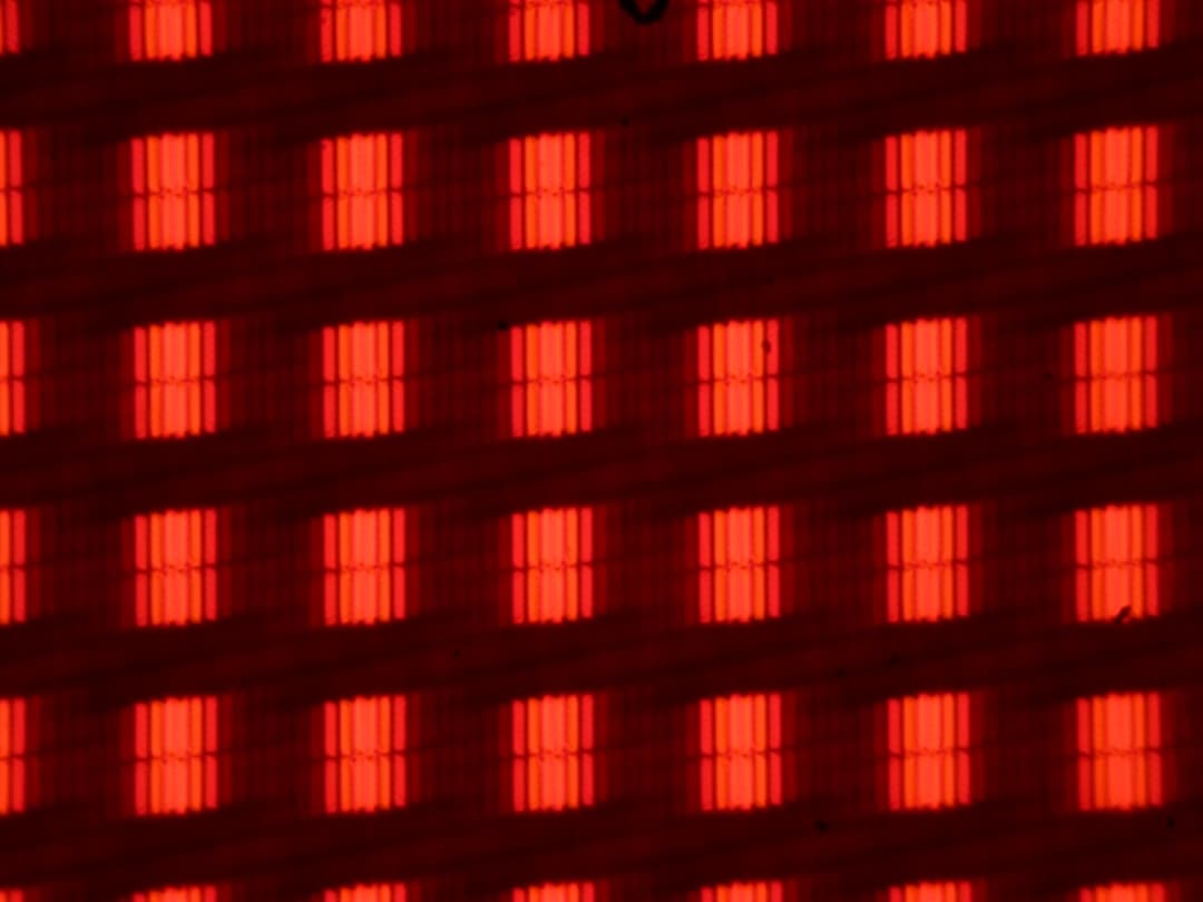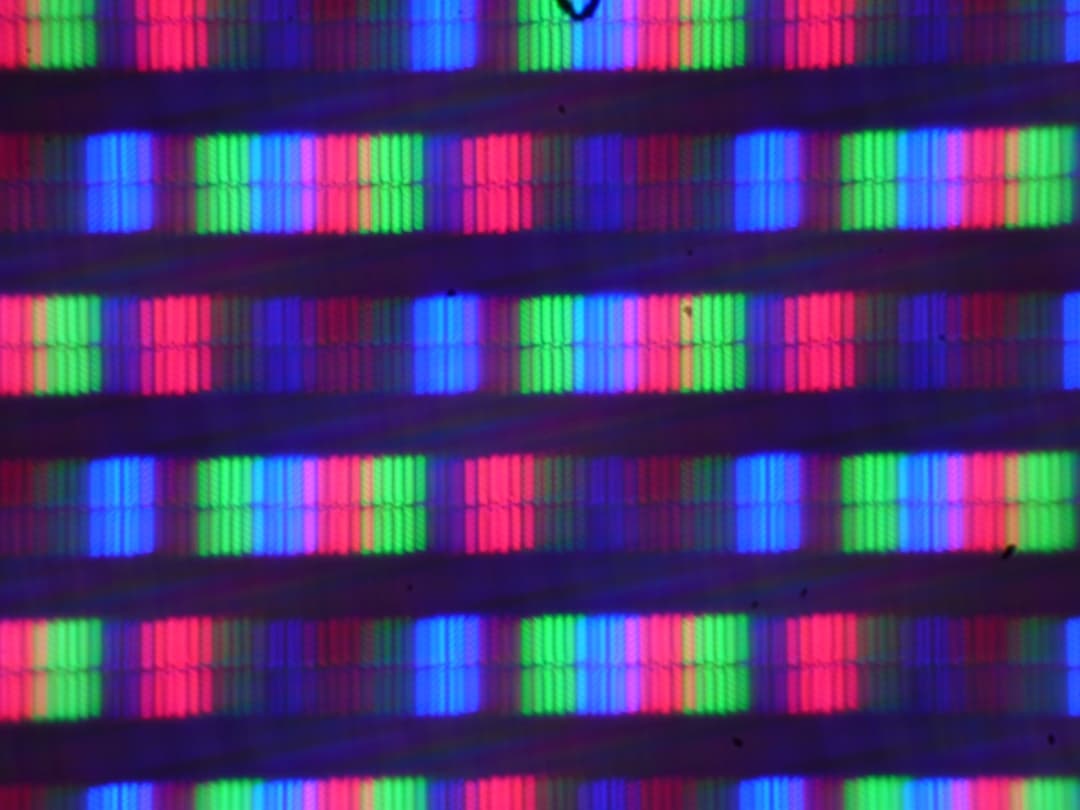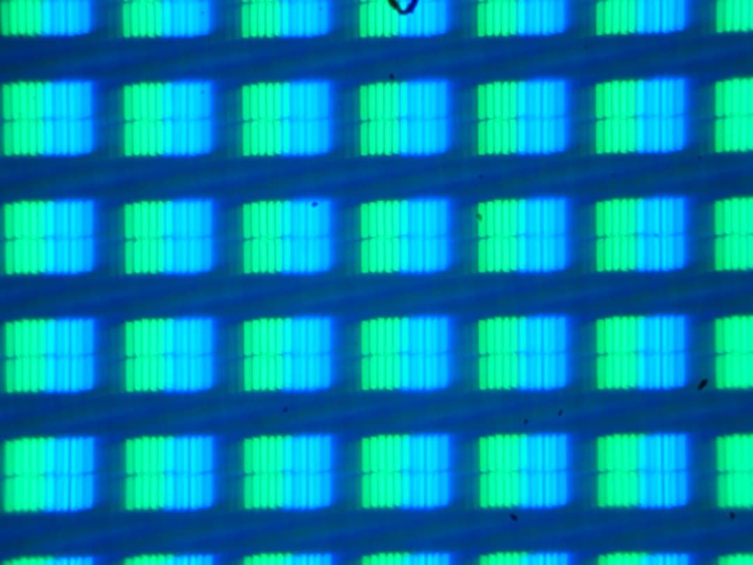 Выявленные характеристики экрана позволяют предположить, что в данном телевизоре установлена матрица типа *VA. Микрофотографии продемонстрировали не совсем обычную картинку: