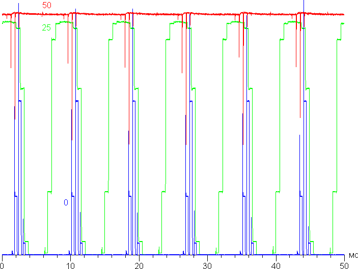 Управление яркостью свечения каждого из светодиодов подсветки осуществляется с помощью ШИМ с частотой 120 Гц. Ниже приведена зависимость яркости от времени, числа — это значения настройки Яркость: