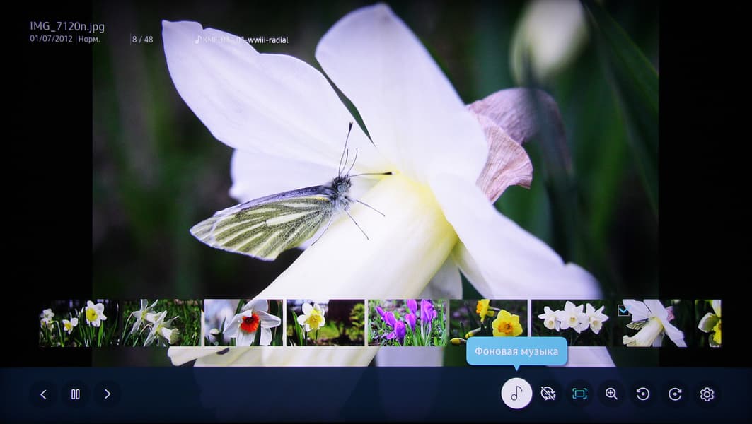 Нами подтверждена способность телевизора показывать растровые графические файлы в форматах JPEG, MPO (один ракурс), PNG и BMP, в том числе в виде слайд-шоу под выбранную фоновую музыку. Изображения JPEG размером 7680×4320 пикселей (PNG-файлы в таком разрешении уже не поддерживаются) выводятся один к одному по пикселям в истинном разрешении 8К и даже без снижения цветовой четкости. Присутствует режим просмотра панорамных изображений 360 градусов.