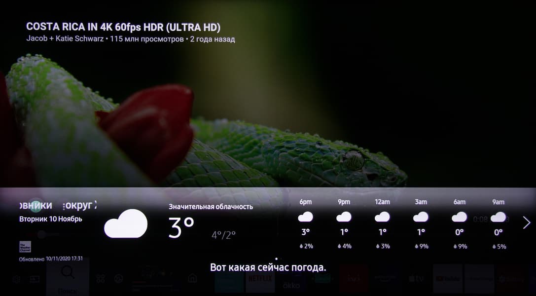 Уже после проведения всех тестов и возврата телевизора, у нас появилась достоверная информация, что в YouTube на этом ТВ появилась поддержка видео в разрешении 8K с HDR при 60 кадр/с.