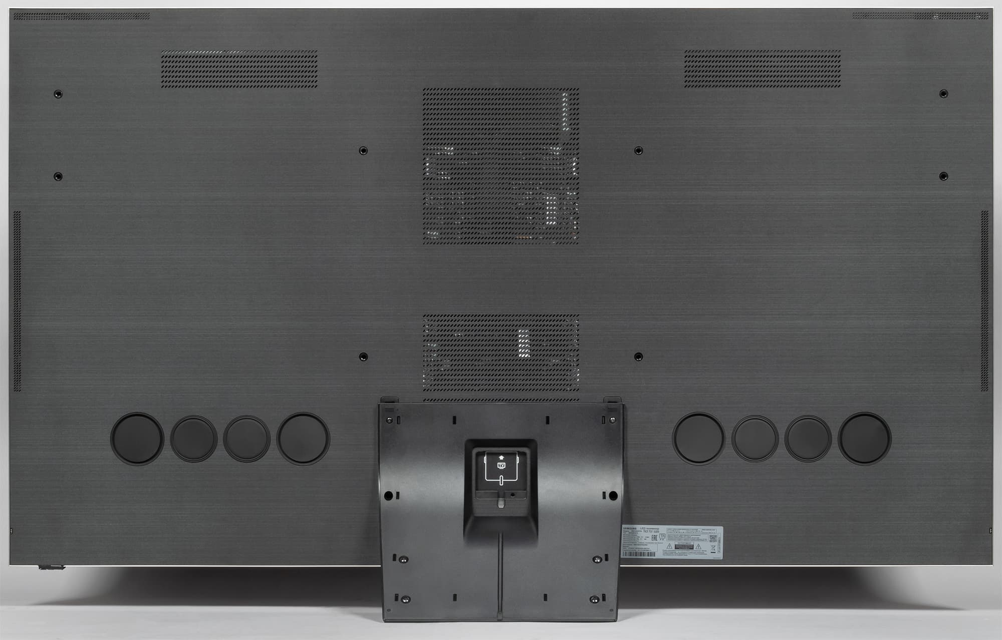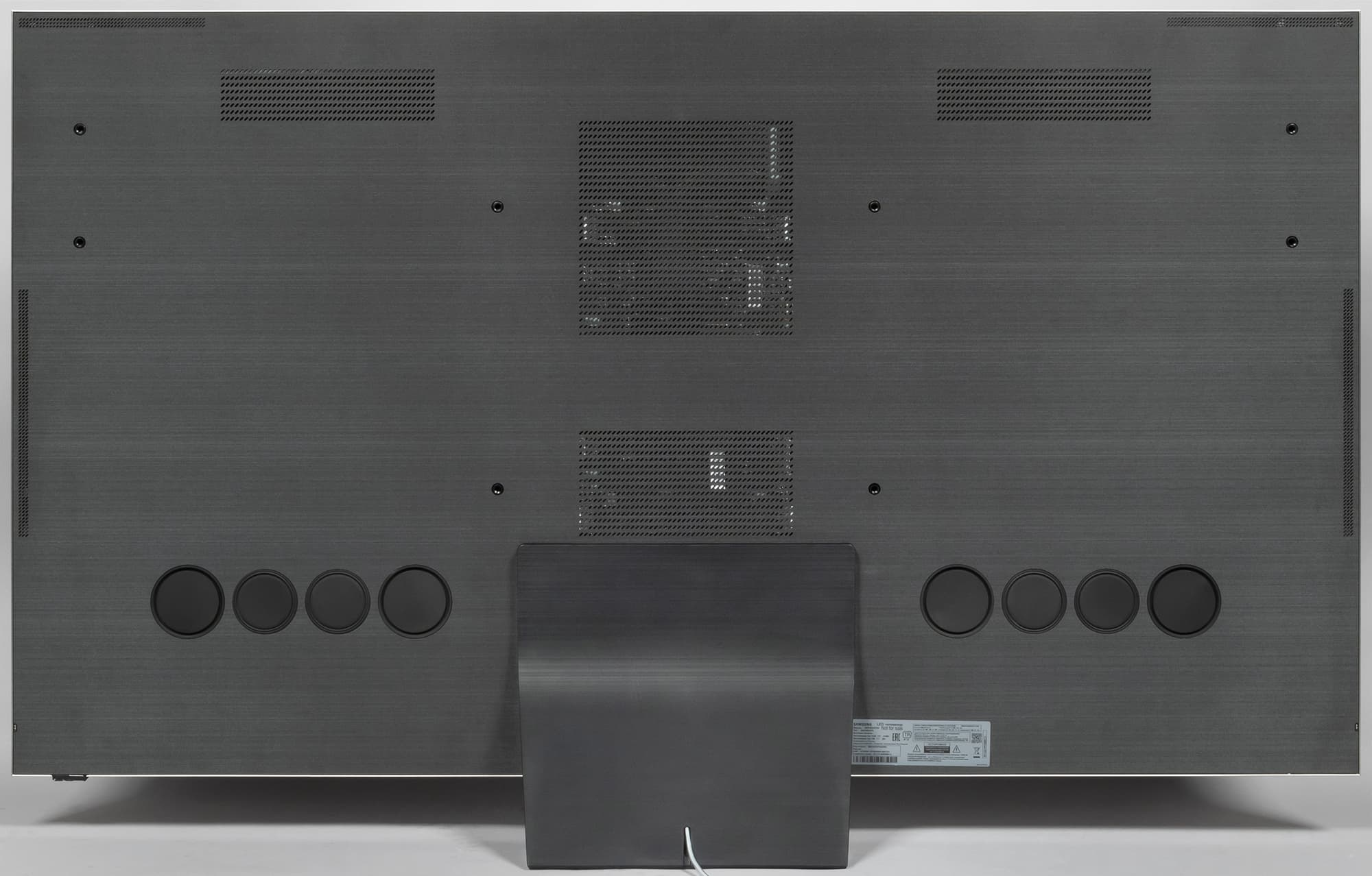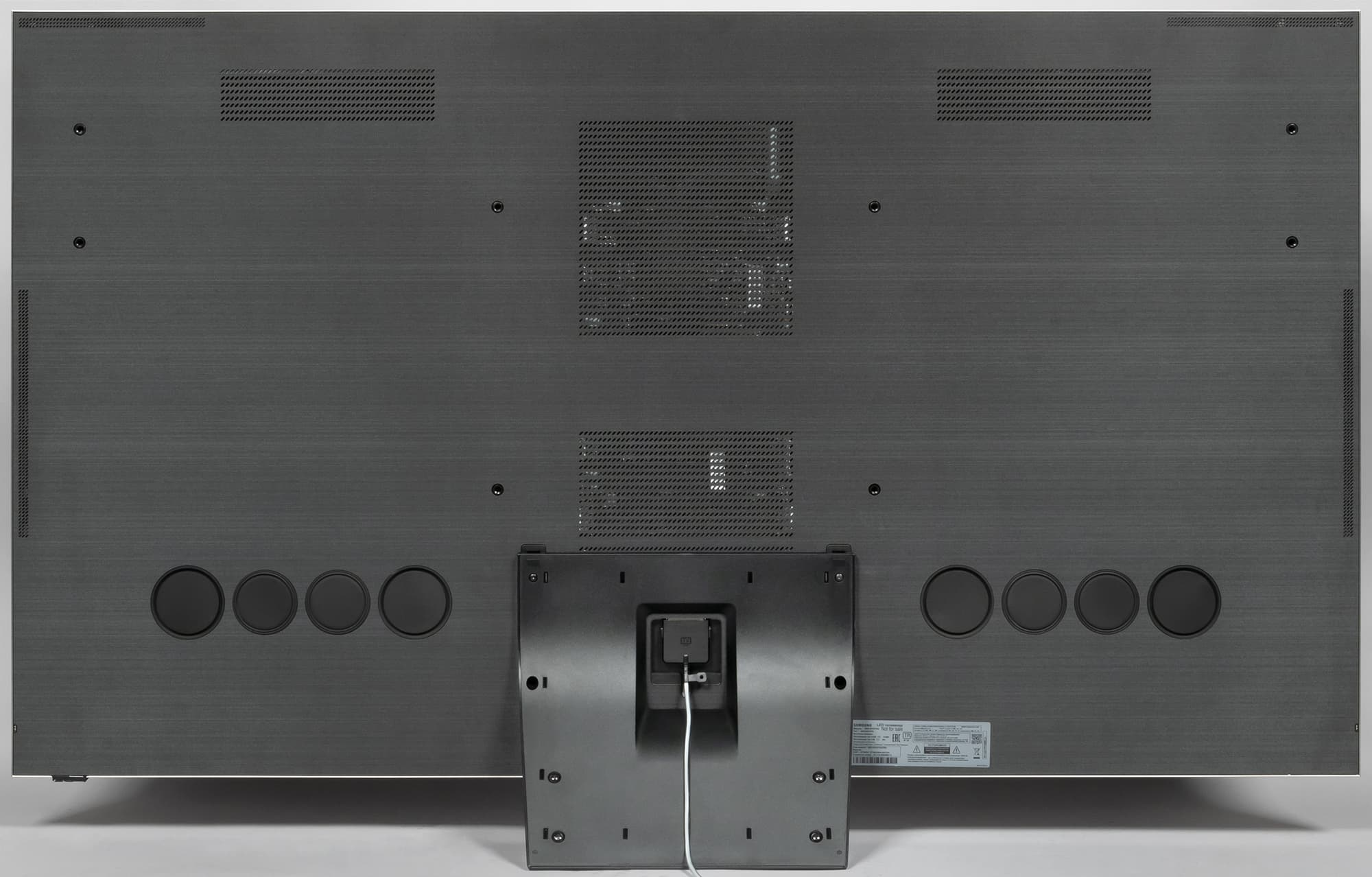 Воздух для охлаждения электроники проходит через решетки на верхнем и боковых торцах корпуса, а также на задней панели. Телевизор имеет полностью пассивное охлаждение. Где-то за решетками на боковых торцах расположены встроенные средне- и высокочастотных громкоговорители. Кроме того, сзади расположены восемь (четыре активных и четыре пассивных) диффузоров низкочастотных громкоговорителей.