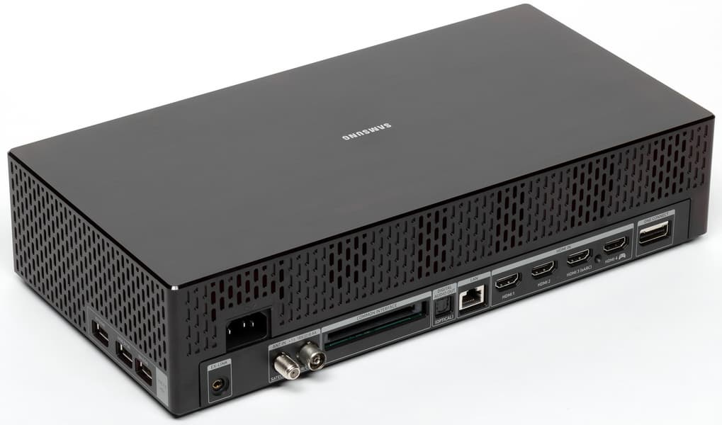 Модуль One Connect представляет собой относительно большую (348×177×80 мм, без выступающих частей) и тяжелую (4480 г) прямоугольную коробку.