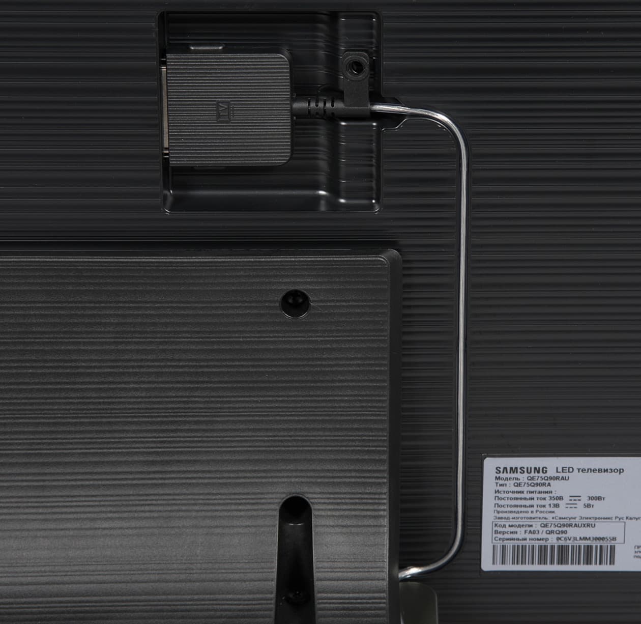 Разъем кабеля One Invisible Connection от модуля One Connect устанавливается в гнездо в неглубокой нише на задней панели и дополнительно фиксируется винтом.