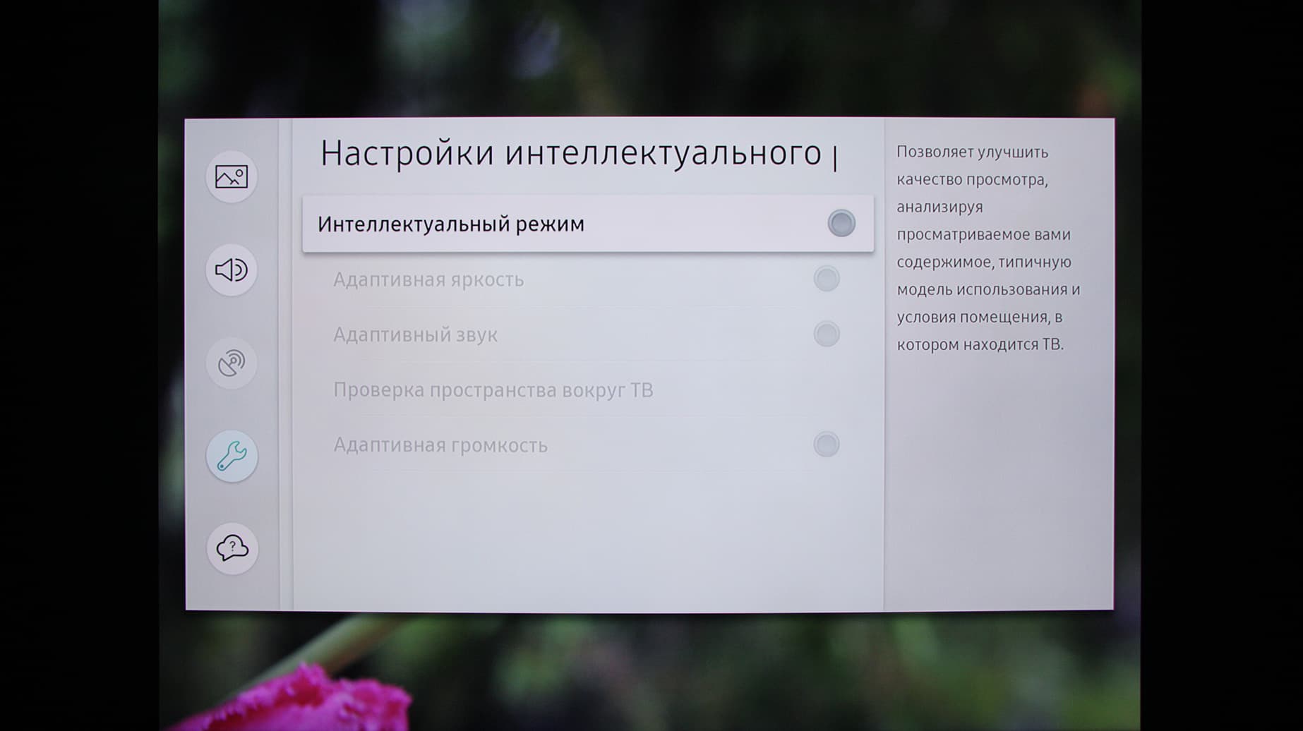 Отметим, что в этом ТВ есть функция, которая для автоматической настройки параметров звука и изображения использует данные, полученные с микрофона на пульте и с датчика освещенности.