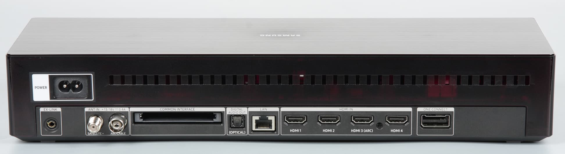 Модуль One Connect представляет собой относительно большую (390×130×68 мм, без выступающих частей) и тяжелую (2,9 кг) прямоугольную коробку.