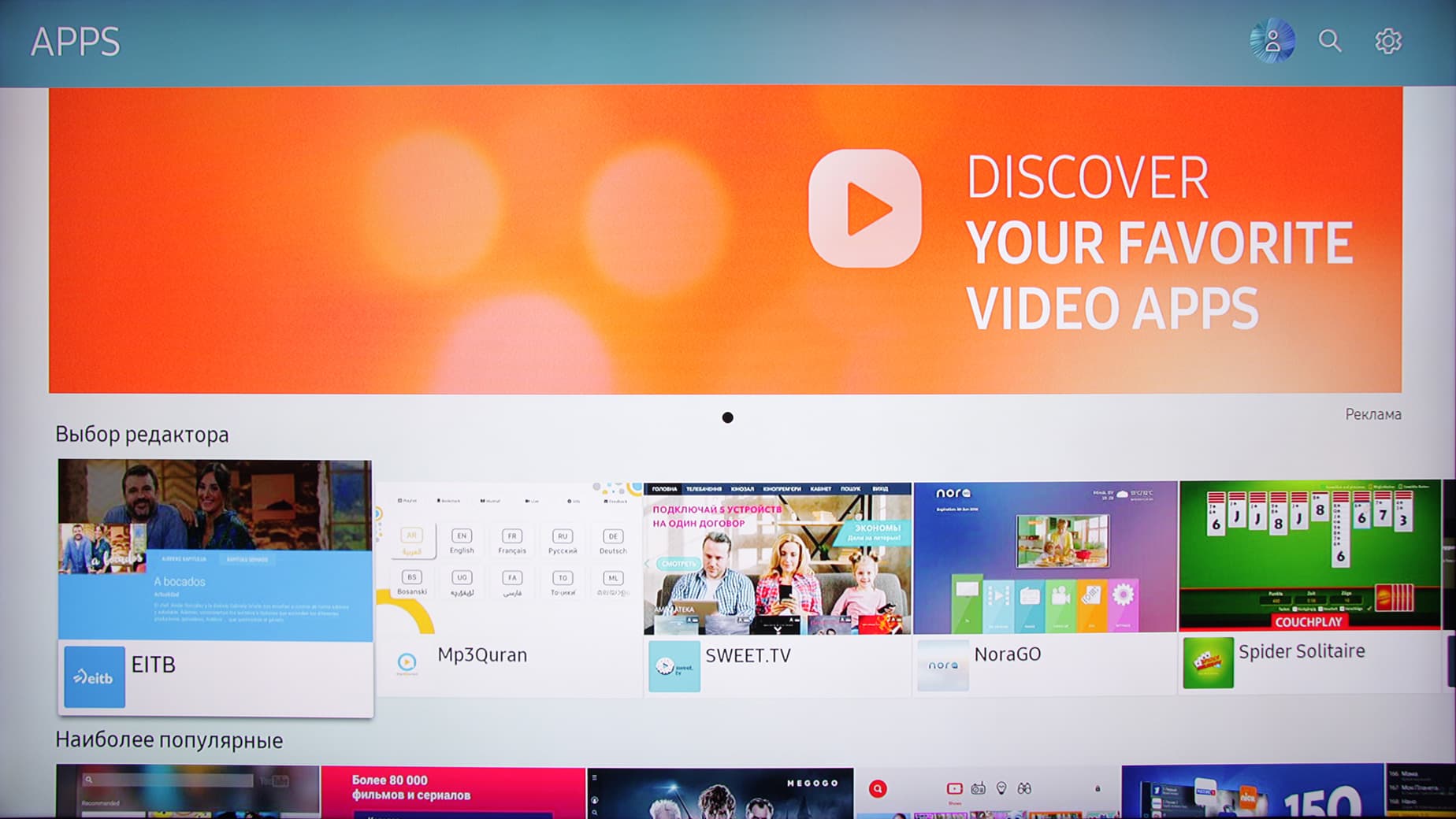 Позиций в этом магазине много, но, разумеется, меньше, чем в случае ТВ с ОС Android TV. Отметим, что в целом ни к стабильности работы, ни к отзывчивости оболочки у нас никаких претензий не возникло. На команды с пульта ТВ реагирует почти моментально. Несмотря на разнообразную анимацию и звуковые эффекты, навигация по меню быстрая. Вот только возврат из меню с настройками к текущему просмотру выполняется через главный экран. Меню с настройками ТВ занимает большую часть экрана, надписи в нем читаемые. Есть русифицированный вариант интерфейса. Качество перевода хорошее, и самое главное, что настройки в большинстве случаев меняют именно то, что ожидаешь, исходя из их наименования. Непосредственно при регулировке параметров изображения на экран выводится уже только название настройки, ползунок и текущее значение или список вариантов, что облегчает оценку влияния этой настройки на изображение, при этом настройки с ползунками перебираются стрелками вверх и вниз.