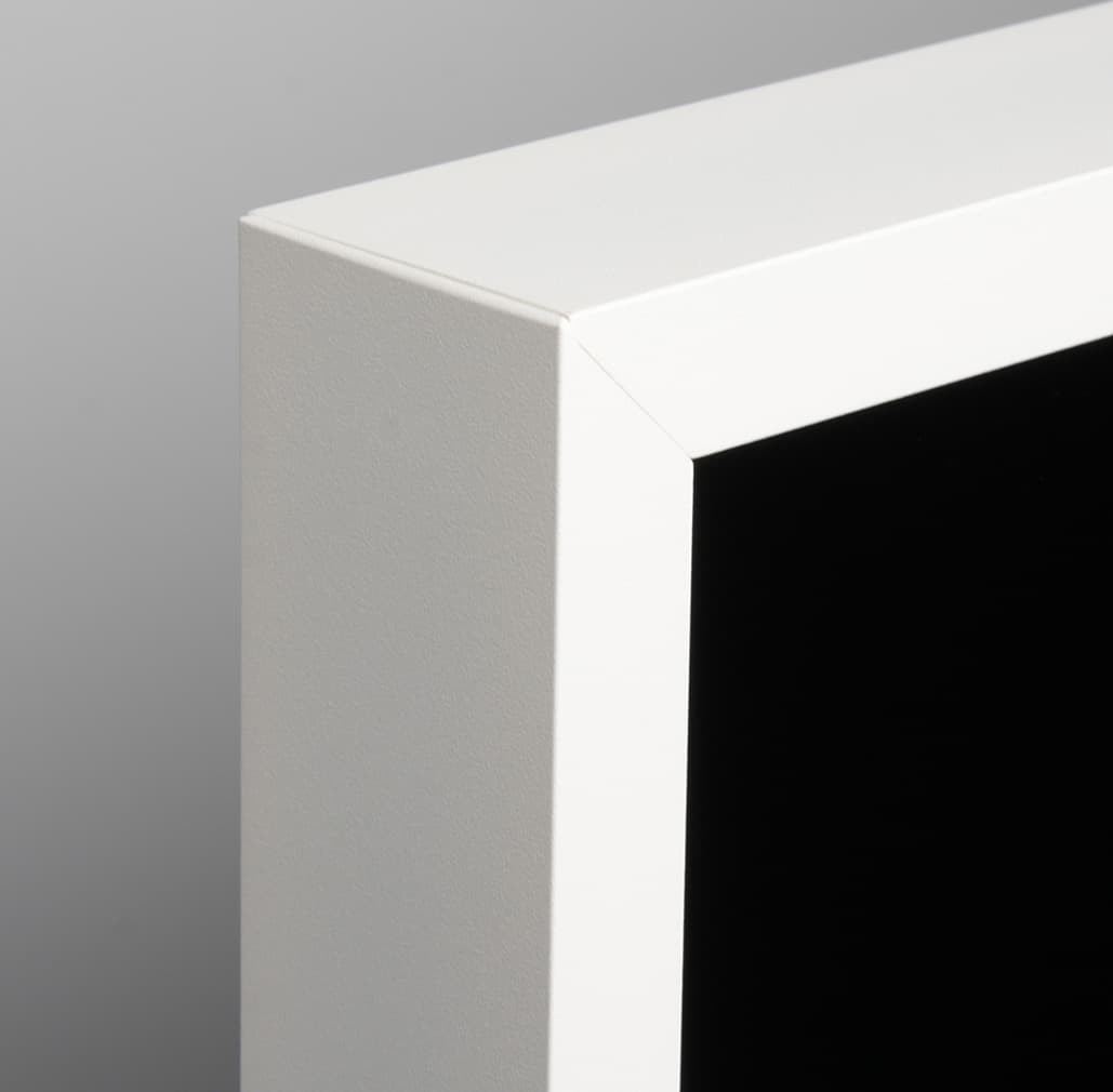 У пользователя есть возможность изменить внешний вид данного телевизора, например, чтобы вписать его в дизайн интерьера. Делается это с помощью дополнительных рамок, устанавливаемых поверх основной рамки. Доступны рамки трех цветов: под орех, бежевая и белая. Цена на рамки зависит от диагонали экрана. На момент написания статьи в фирменном интернет-магазине Samsung комплект рамки для телевизора с диагональю 55 дюймов стоил 13 990 рублей. Нам досталась рамка белого цвета. Рамка состоит из четырех кусков профиля из алюминиевого сплава, имеющих снаружи стойкое порошковое покрытие. На телевизоре дополнительные рамки закрепляются с помощью магнитных фиксаторов — магниты расположены под рамкой телевизора, а на внутренней плоскости дополнительных рамок закреплены стальные полоски. В помощь магнитам рамка фиксируется четырьмя пластиковыми уголками, устанавливаемыми сзади, и тремя пистонами снизу, но рамка хорошо удерживается и только за счет магнитов.