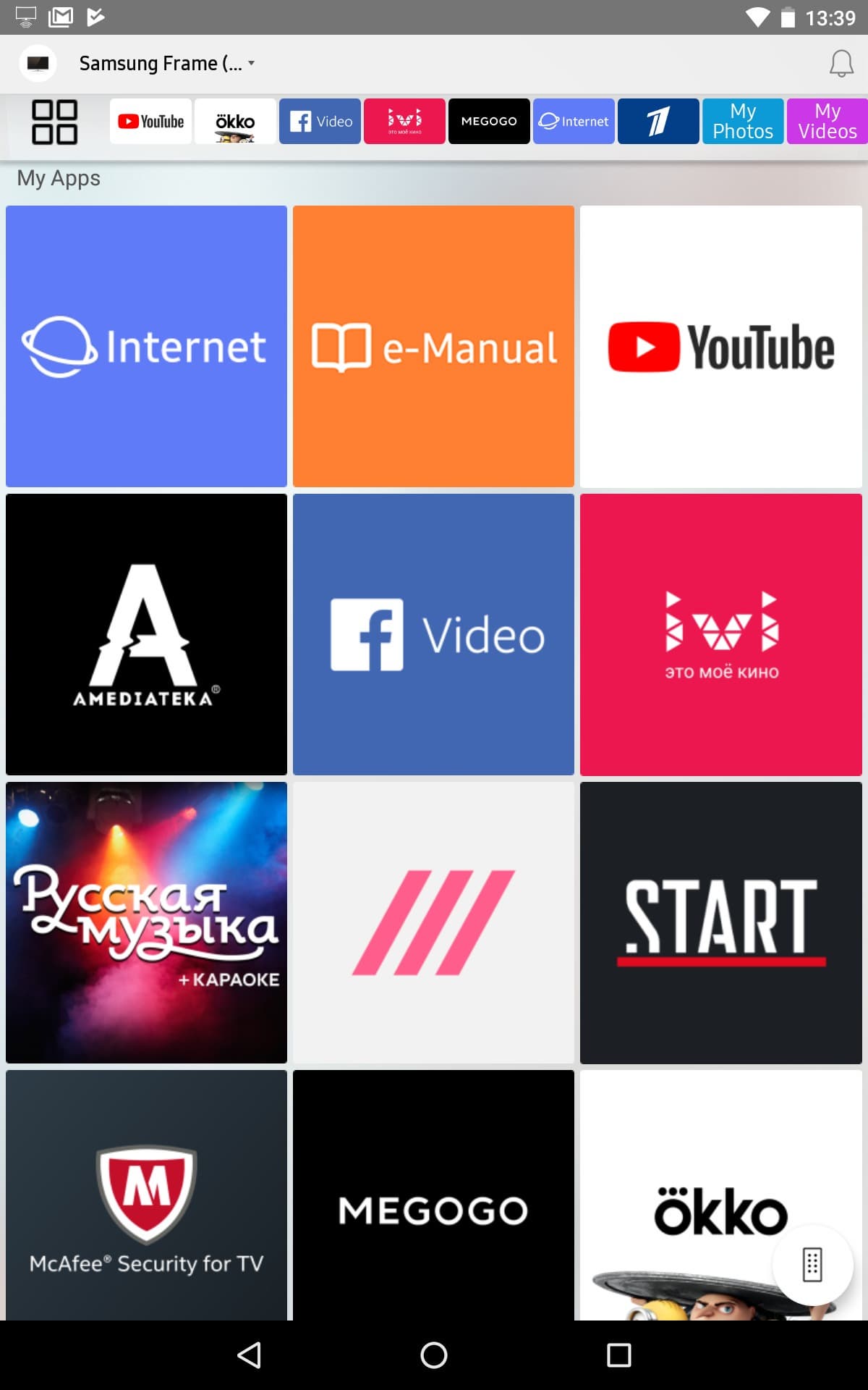Кроме того, телевизором можно управлять посредством мобильного устройства с помощью фирменного приложения Smart View для Android и iOS. При запуске на главном окне Smart View выводятся плитки быстрого запуска установленных на ТВ приложений.