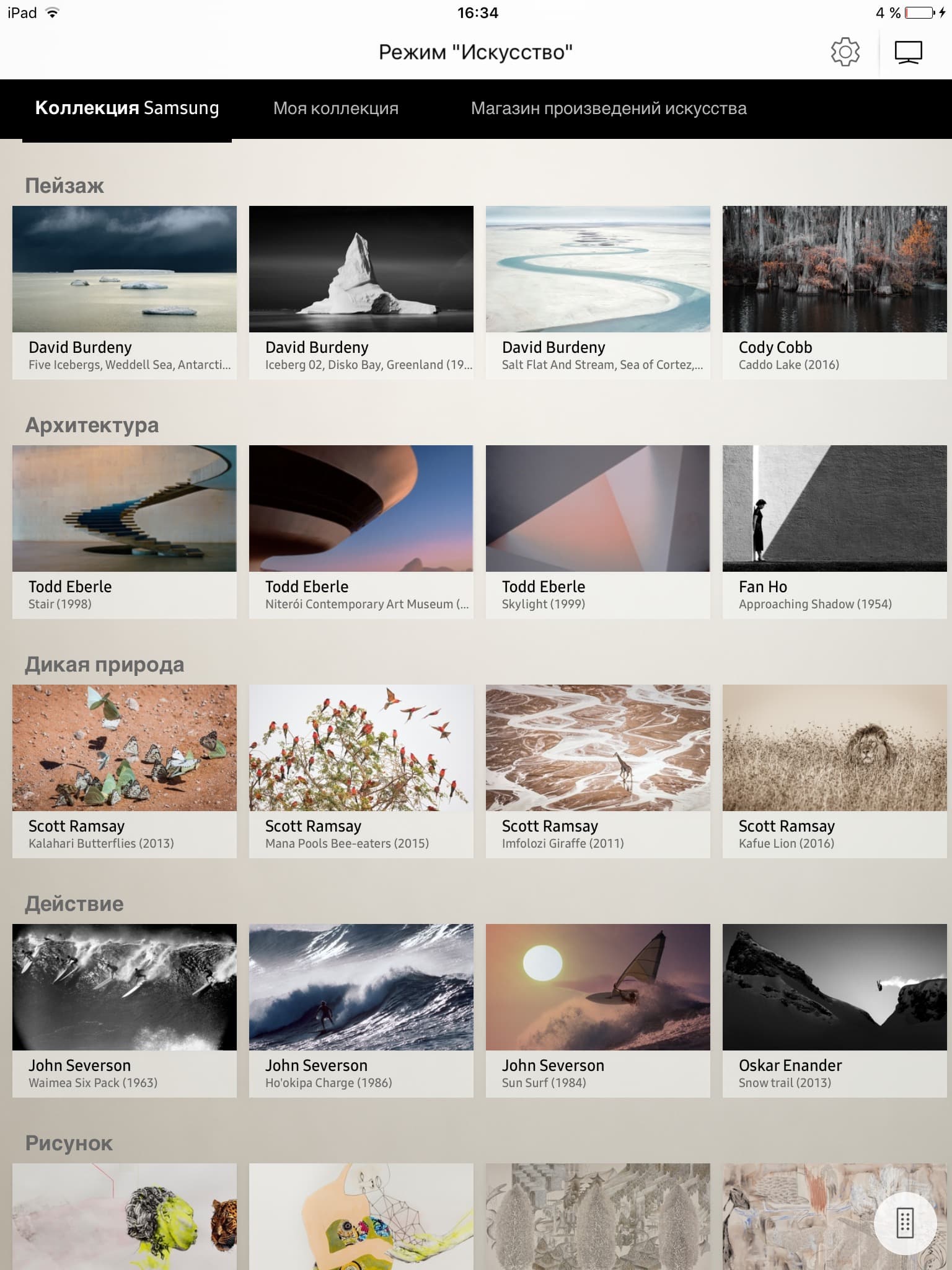 Несколько десятков произведений искусства уже загружены в память телевизора и находятся в разделе Коллекция Samsung.