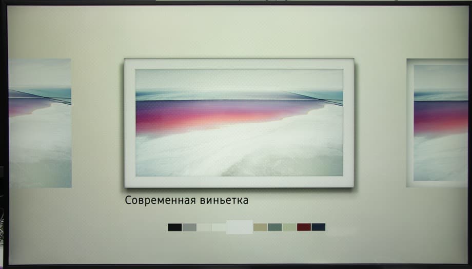 В режиме «Картина» телевизор статично демонстрирует выбранное изображение или на весь экран, или с простой виньеткой, или с виньеткой с затенением.