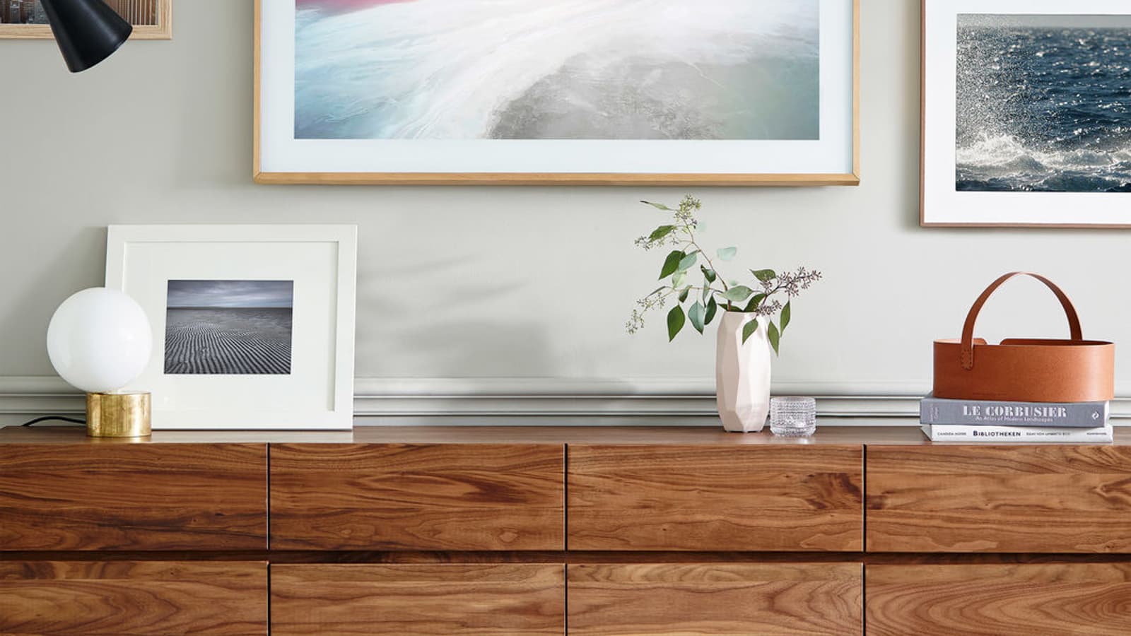 Телевизоры Samsung линейки The Frame и, в частности, рассмотренная в данной статье модель UE55LS003AUXRU могут служить элементом интерьера, заменяя обычную картину на стене, но при этом они сохраняют всю функциональность современного «умного» телевизора, представляющего собой мультимедийный комбайн с расширенными сетевыми возможностями. Стоит отметить аккуратный вид, как спереди, так и сзади, вынесенный модуль подключения, соединенный с блоком экрана тонким оптическим кабелем, специальный настенный кронштейн, обеспечивающий крепление с минимальным зазором, и приобретаемые отдельно сменные дополнительные декоративные рамки и стильную подставку в виде мольберта, поддерживающую идею имитации картины.
