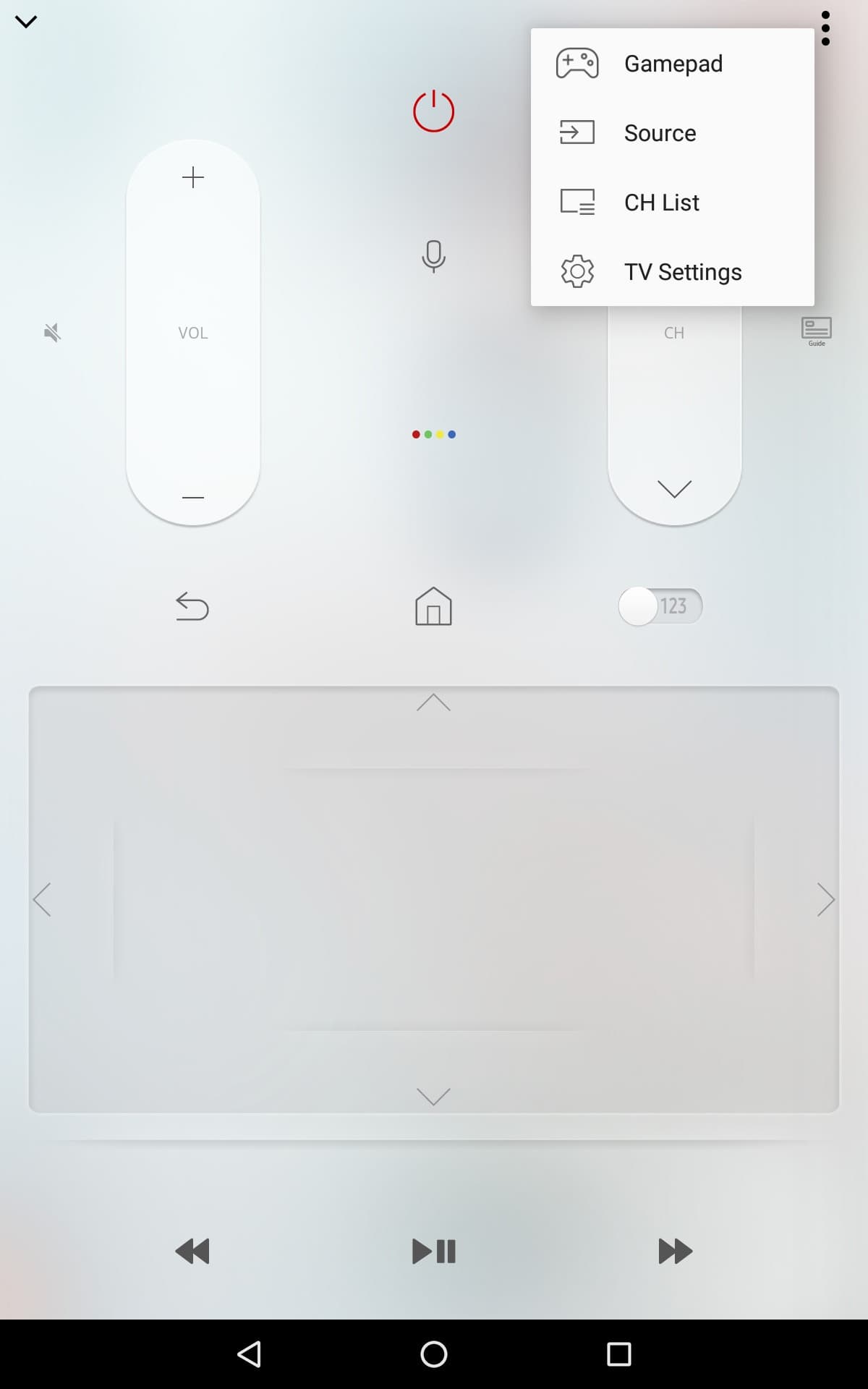 Линейка из пиктограмм в верхней части окна показывает, что, листая вправо-влево, можно перейти к выбору рекомендуемого контента, который будет воспроизводится в соответствующих пиктограммам приложениях. На воспроизведение на телевизоре можно запускать видео- и аудиофайлы, а также графические файлы, находящиеся на мобильном устройстве. Круглый значок в нижнем правом углу позволяет перейти в режим виртуального пульта ДУ с кнопками, полем координатного ввода или цифровой клавиатурой, виртуальной клавиатурой для ввода текста в текстовые поля, меню быстрого перехода к ряду функций телевизора и даже с режимом виртуального игрового контроллера.