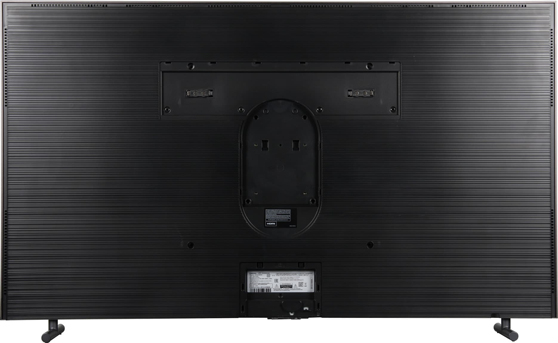Дизайн очень строгий, нет никаких блестящих или назойливых элементов, ничего не отвлекает пользователя от изображения на экране. Также дизайнеры уделили внимание оформлению задней поверхности, добившись ее аккуратного внешнего вида за счет единой плоскости и использования элементов, закрывающих ниши, отверстия и подключенные кабели. Так выглядит телевизор сзади со снятыми кожухами, щитками и заглушками: