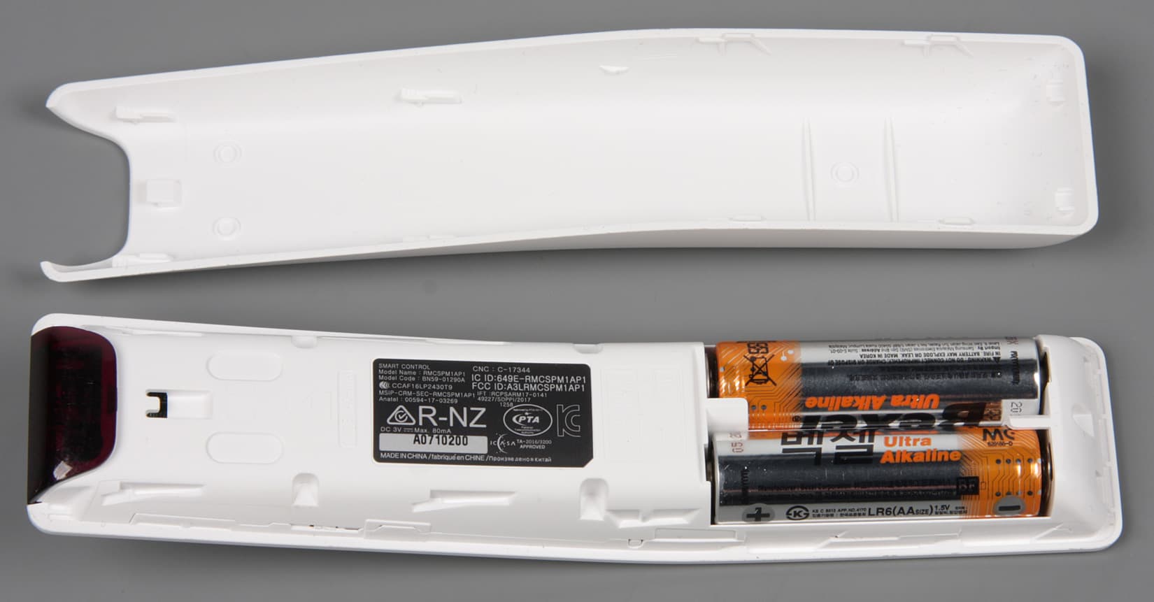 Для работы голосового управления требуется подключение к Интернету и согласие пользователя на работу соответствующей службы. К качеству голосового управления претензий нет. Работает пульт в основном по Bluetooth, по ИК-каналу на телевизор дублируется только команда включения и выключения. При первом включении сопряжение должно выполняться автоматически, если этого не произошло, то необходимо направить пульт на ИК-приемник на телевизоре, затем нажать и удерживать две кнопки на ДУ, как это описано в руководстве и обозначено под крышкой пульта. Питается пульт от двух элементов типа AA.
