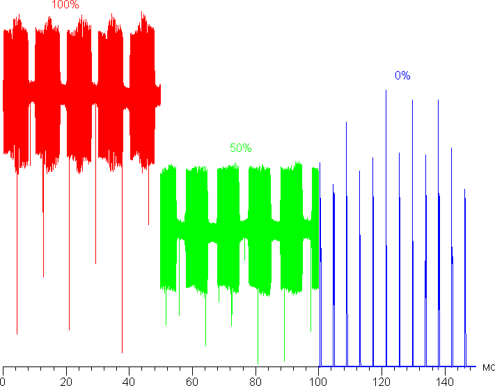 Время отклика при переходе черный-белый-черный равно примерно 10 мс (7 мс вкл. + 3 мс выкл.). Скорость переходов между полутонами определить не удалось из-за значимой модуляции подсветки. Выраженного «разгона» матрицы нет. В целом, с нашей точки зрения, такой скорости матрицы вполне достаточно даже для игры в очень динамичные игры.