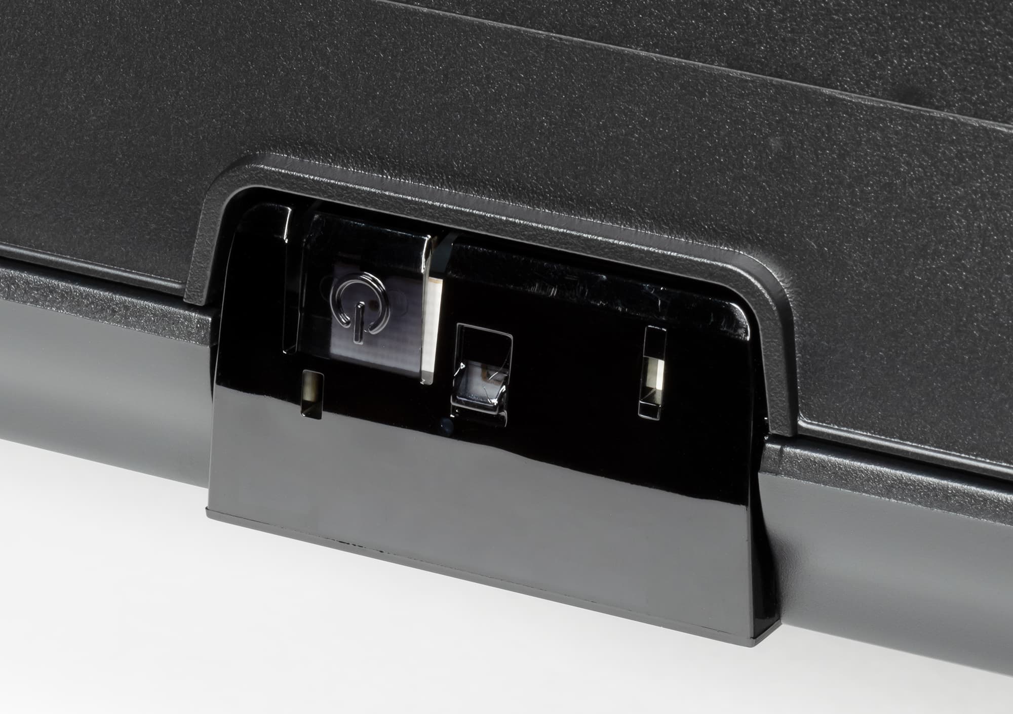 Воздух для охлаждения электроники проходит через решетки на нижнем торце корпуса и в верхней части задней панели.