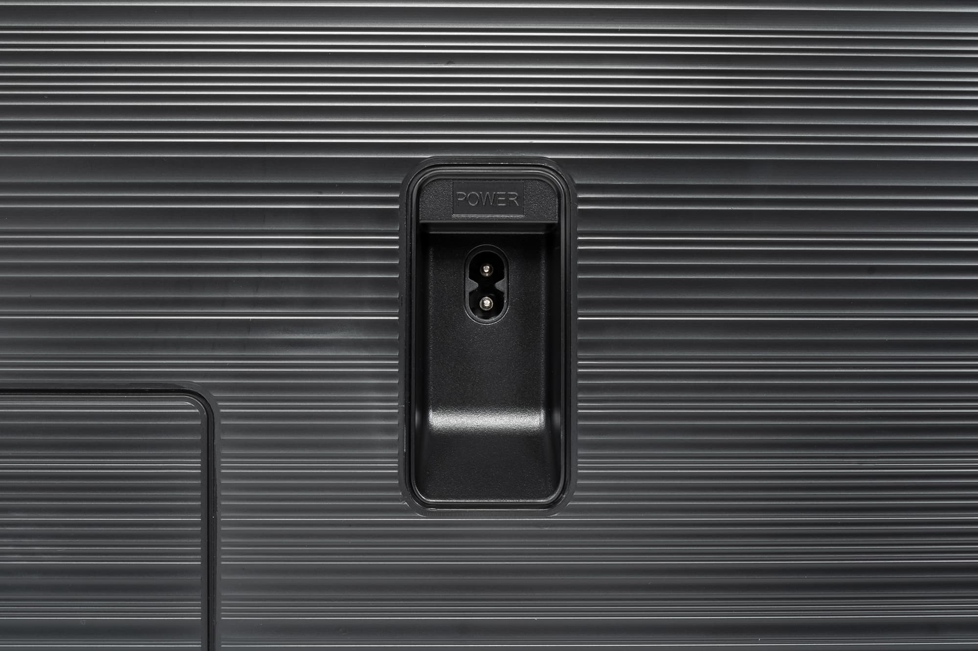 Телевизор имеет полностью пассивное охлаждение. За решетками на нижнем торце расположены встроенные громкоговорители с вытянутыми диффузорами.