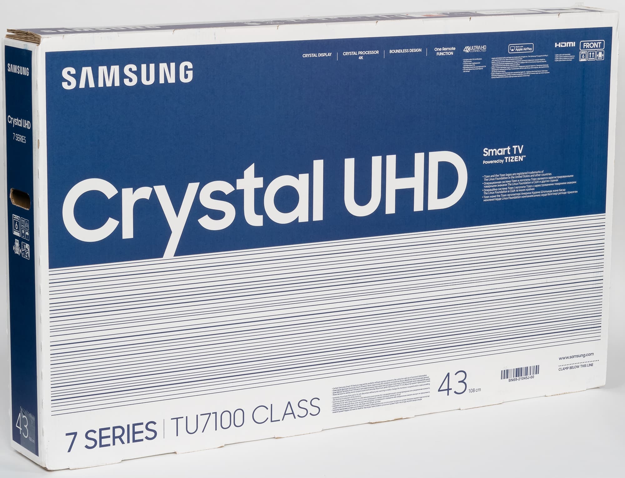 По совокупности характеристик Samsung UE43TU7100UXRU является типичным представителем современных недорогих «умных» телевизоров с разрешением 4К: массовое использование пластика в элементах конструкции, простая подставка в виде двух ножек, ничем не примечательный ИК-пульт ДУ, номинальная поддержка HDR с невысокой максимальной яркостью и нешироким цветовым охватом и проблемы с выводом правильных 24 кадр/с. Однако есть приятные особенности: современный дизайн с условно безрамочным экраном, быстрый Wi-Fi и весьма неплохая для этого класса встроенная акустическая система. К неожиданным странностям отнесем шахматный принцип формирования полутонов при использовании встроенного плеера и всего один порт USB. Однако качество картинки весьма высокое, а в случае изображения от внешнего источника с выводом полутонов все в порядке. Игроки оценят невысокие значения времен отклика и задержки вывода. Помимо игр и просмотра кино и телепередач этот телевизор можно использовать в качестве большого монитора для работы за ПК, так как на максимальной яркости (она не чрезмерно высокая) мерцания нет, а вывод в режиме 60 кадр/с может быть 1:1 по пикселям и без потери яркостной и цветовой четкости.