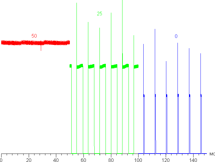 Управление яркостью свечения подсветки осуществляется с помощью ШИМ с частотой 100 ГЦ (при 50 Гц частоты обновления) или 120 Гц (при 60/24 Гц частоты обновления). Ниже приведена зависимость яркости от времени, числа — это значения настройки Яркость (частота обновления 60 Гц):