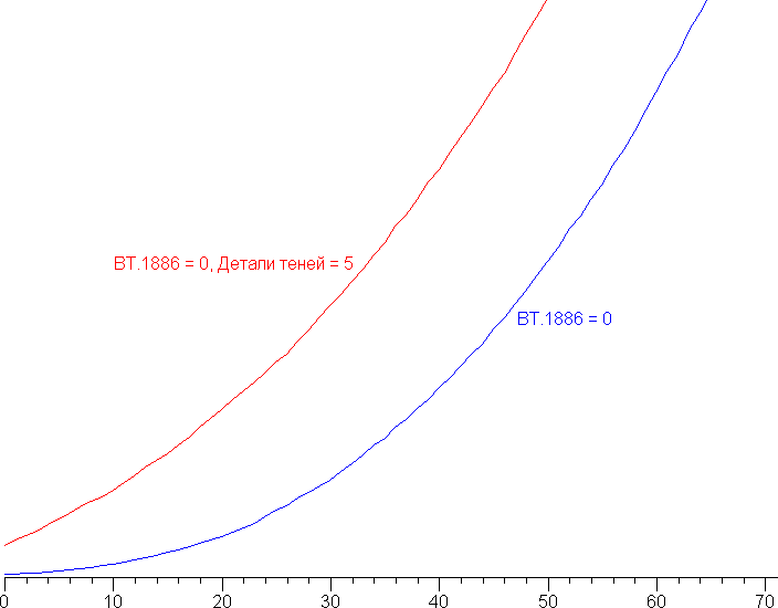 Игрокам может пригодиться функция, регулирующая видимость деталей в тенях, с названием Детали теней. Ниже показано как меняется гамма-кривая при крайнем значении этой настройки: