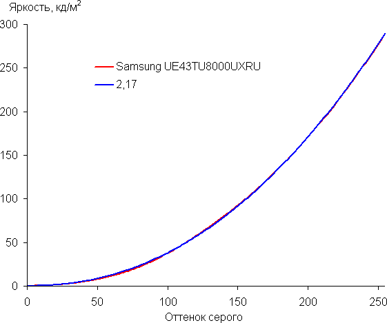 Аппроксимация полученной гамма-кривой дала показатель 2,17, что близко к стандартному значению 2,2. При этом реальная гамма-кривая мало отклоняется от аппроксимирующей степенной функции:
