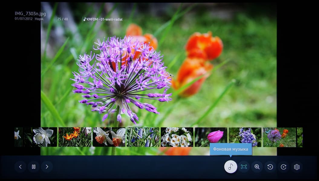 Нами подтверждена способность телевизора показывать растровые графические файлы в форматах JPEG, MPO (один ракурс), PNG и BMP, в том числе в виде слайд-шоу с эффектами перехода и под выбранную фоновую музыку. Изображения размером 3840×2160 пикселей выводятся один к одному по пикселям в истинном разрешении 4К и даже без потери цветовой четкости.