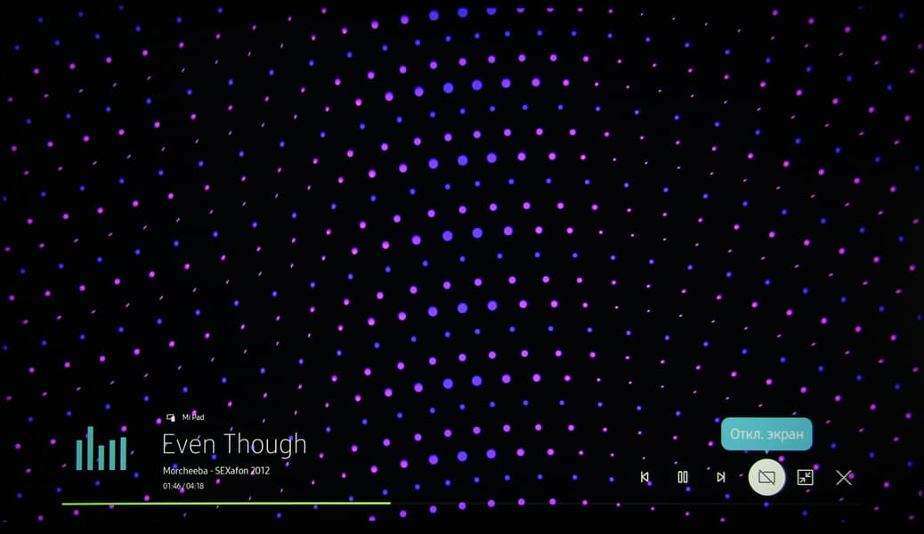 Напомним, что по Bluetooth на телевизор можно передавать звук, при этом телевизор переходит в режим Ambient и включает динамическую заставку Стена музыки.
