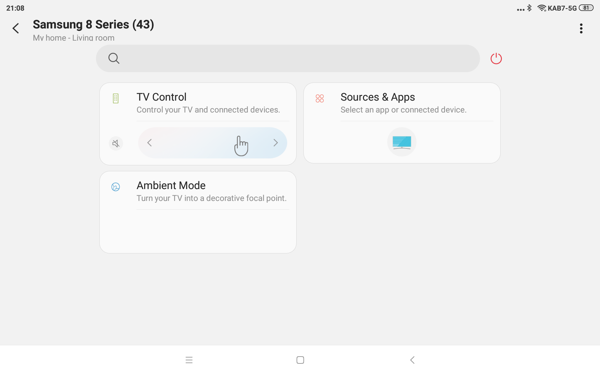 Кроме того, телевизором можно управлять посредством мобильного устройства с помощью фирменного приложения SmartThings для Android и iOS. В данном ПО телевизор представляется как одним из устройств «умного дома», входящих в экосистему SmartThings. Для доступа к устройствам SmartThings используется облачный сервис, поэтому телевизором можно управлять из любого места, где есть доступ к Сети, хотя в данном случае это не дает особых преимуществ. В ПО SmartThings в главном окне модуля работы с телевизором есть окна доступа к виртуальному пульту ДУ, к выбору входов и приложений и к настройкам работы режима Ambient.