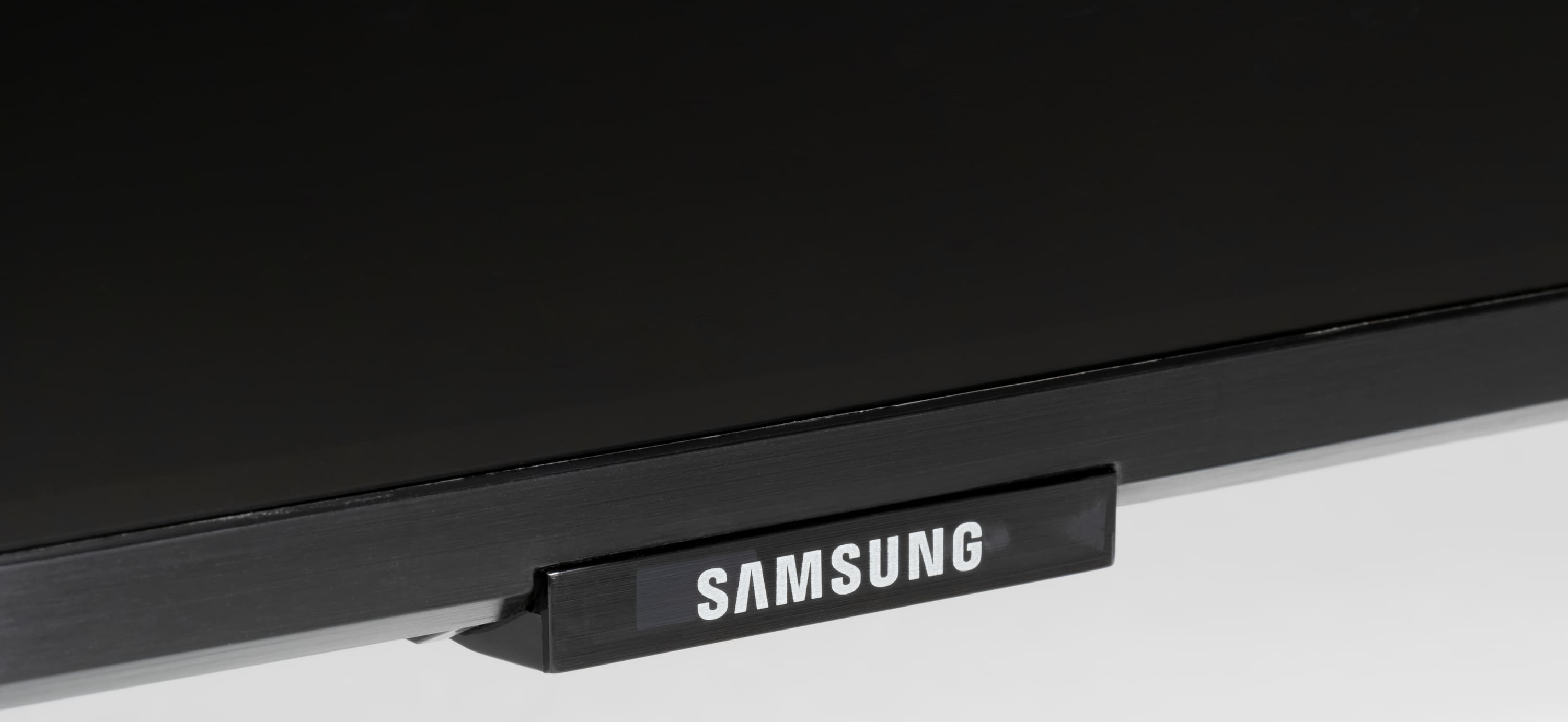 За логотипом скрываются ИК-приемник пульта ДУ, ИК-излучатели для управления подключенной к ТВ техникой и датчик внешней освещенности. На нижнем торце накладки находится единственная кнопка управления. Ей с помощью короткого меню можно очень ограниченно управлять телевизором, когда пульт не доступен. Там же расположен индикатор состояния. Индикатор неяркий, в дежурном режиме он светится красным, спереди его практически не видно.