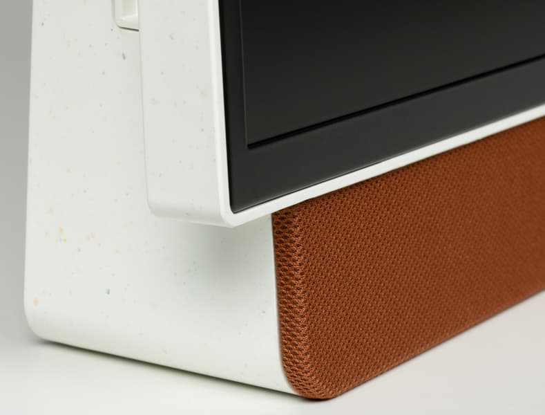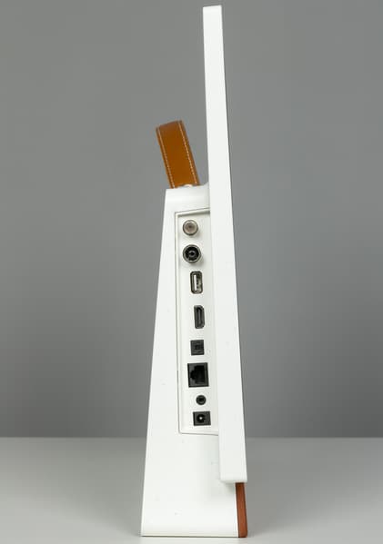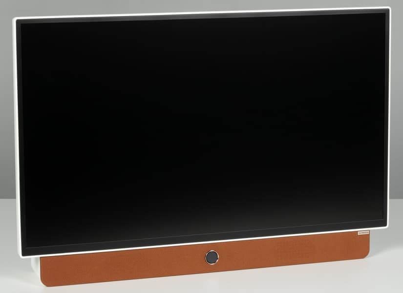Форма корпуса у ТВ нестандартная, и вряд ли его получится использовать как экран для продолжительной работы — из-за постоянного наклона назад и невозможности поднять дисплей, как в случае со многими настольными мониторами. Совместимость с VESA-кронштейнами отсутствует.