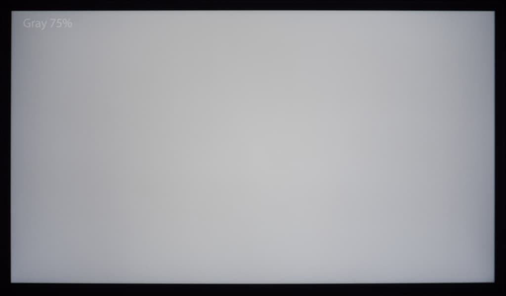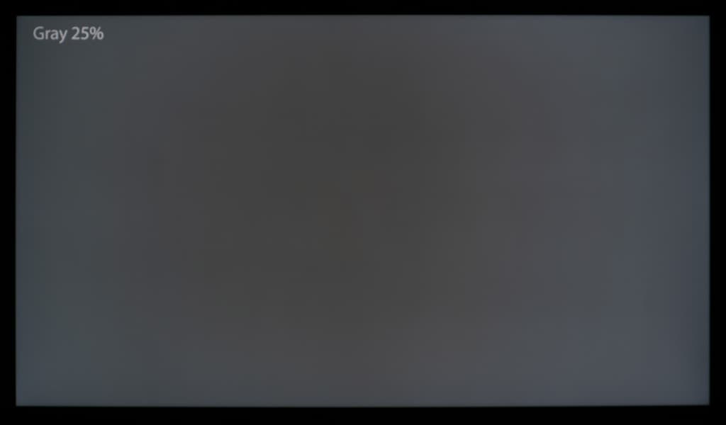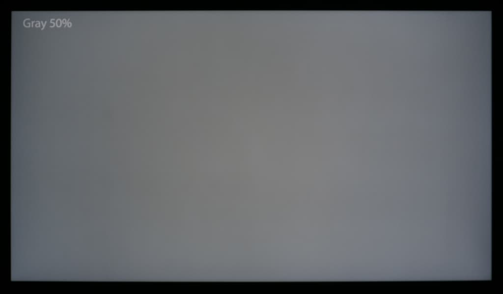 Впрочем, если посмотреть на неравномерность при переходе к более темным серым оттенкам с их выводом на всю площадь экрана ТВ, то на средних и самых темных из них вдобавок можно заметить выраженные вертикальные полосы (с легким паразитным оттенком), свидетельствующие о неравномерном распределении света по светорассеивающей подложке. Но всё это ожидаемо и вполне типично для бюджетных VA-панелей. Сильно удивляться не стоит.