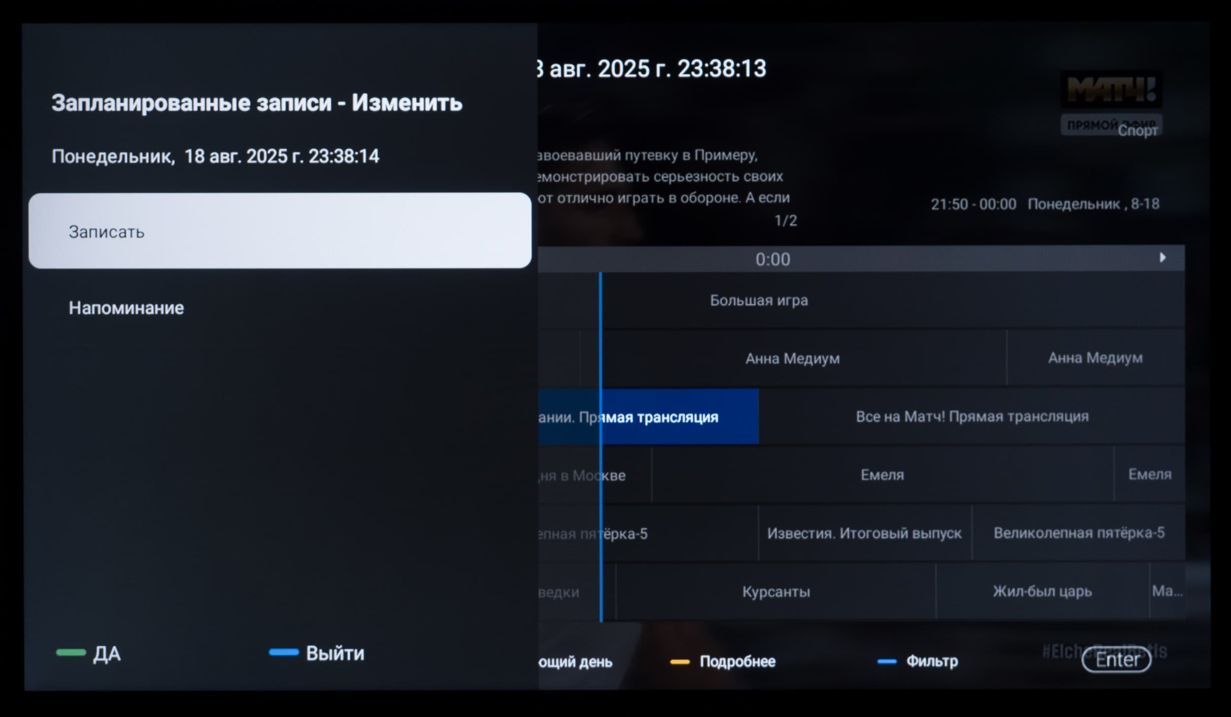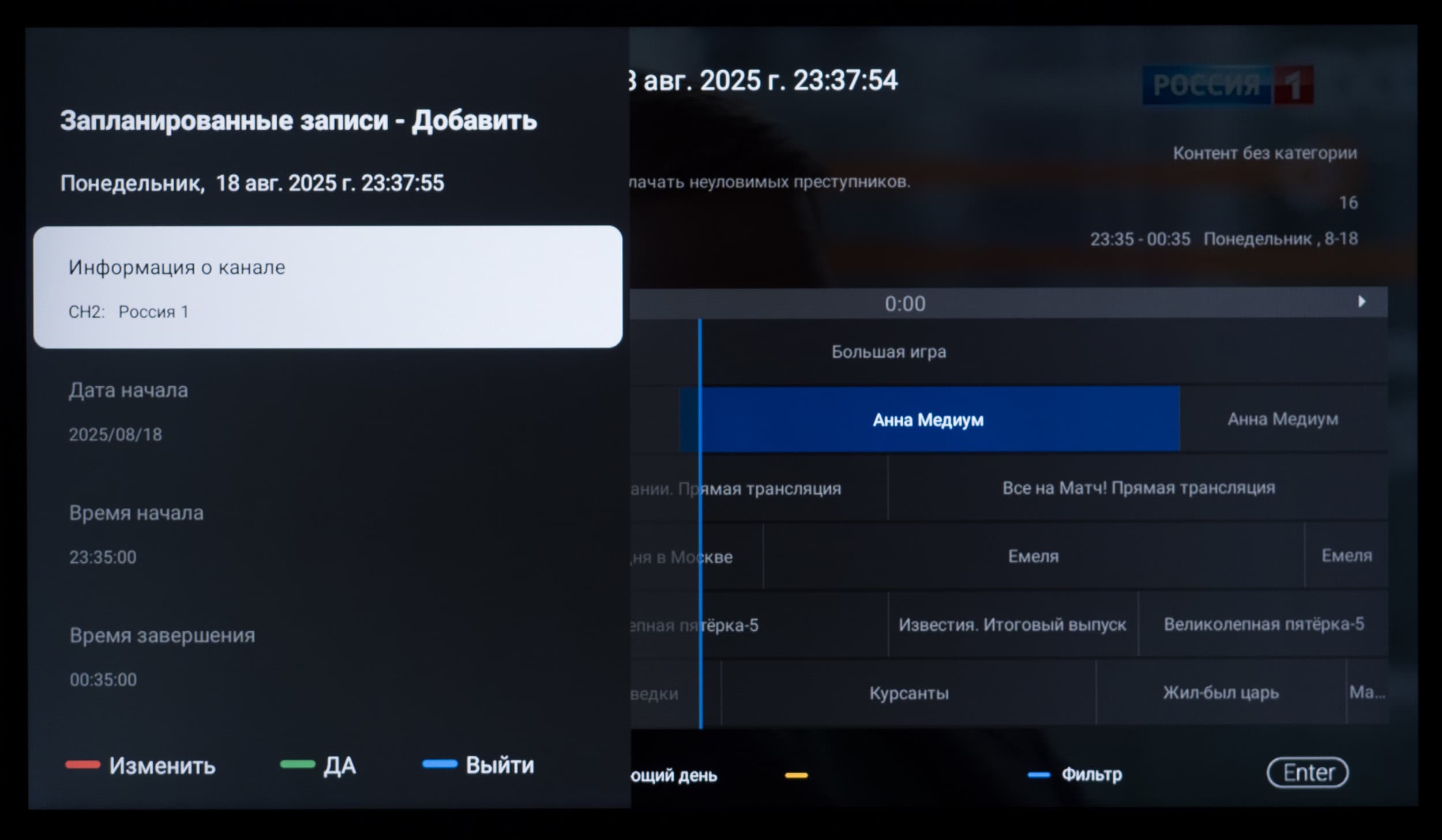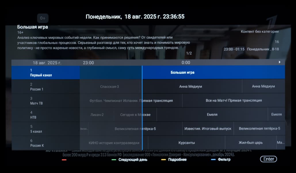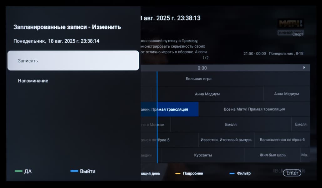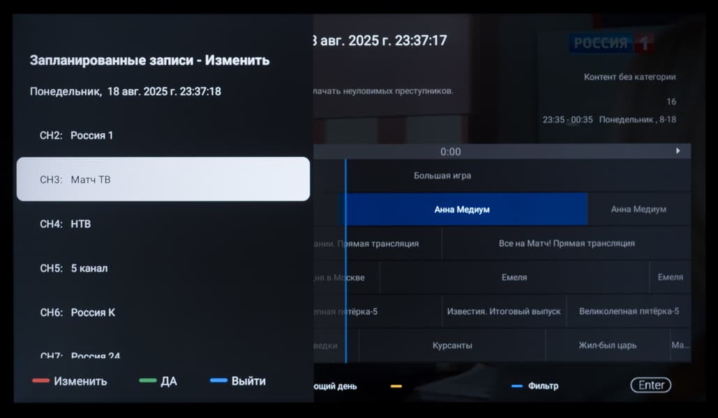 - Наличие встроенной программы телепередач (EPG), записи программ (PVR) и временного сдвига (Time-Shift)
