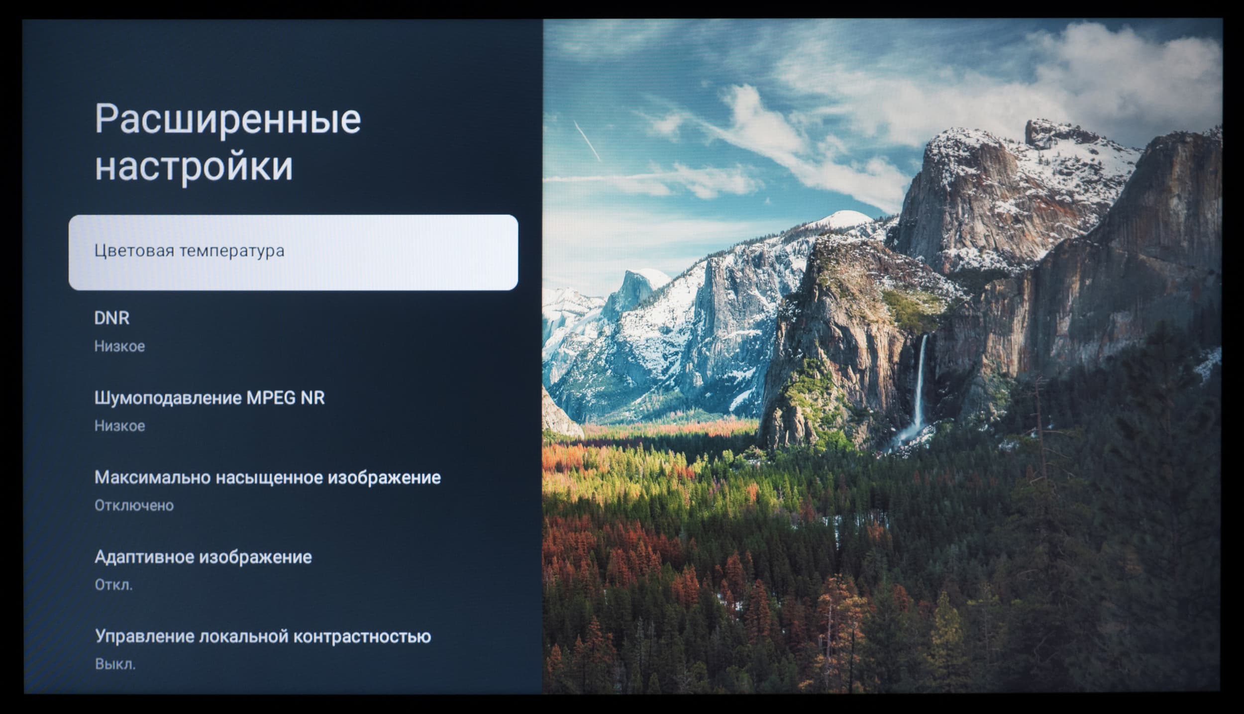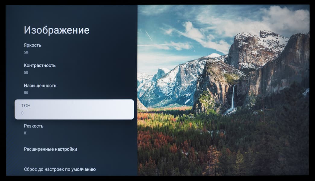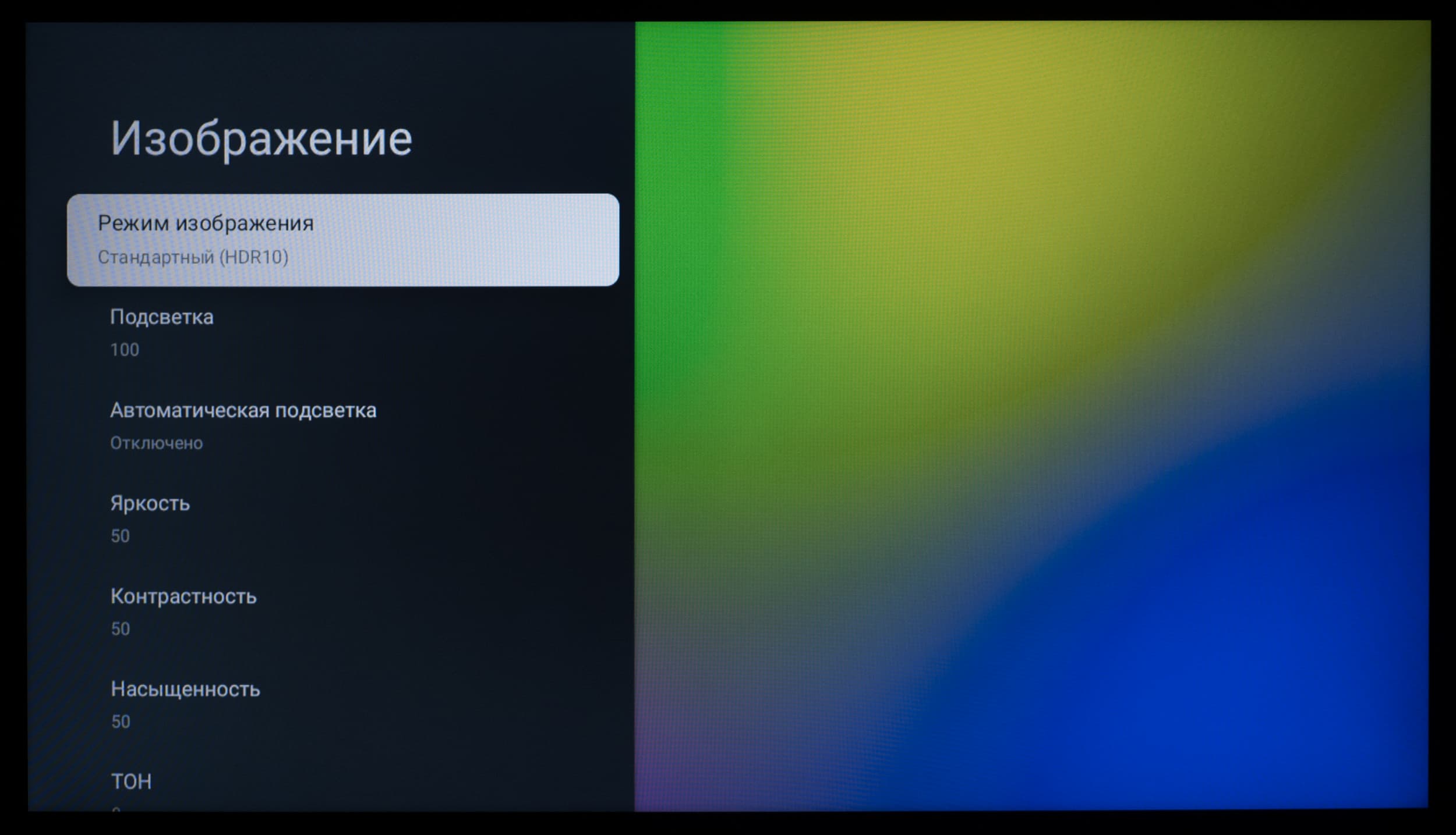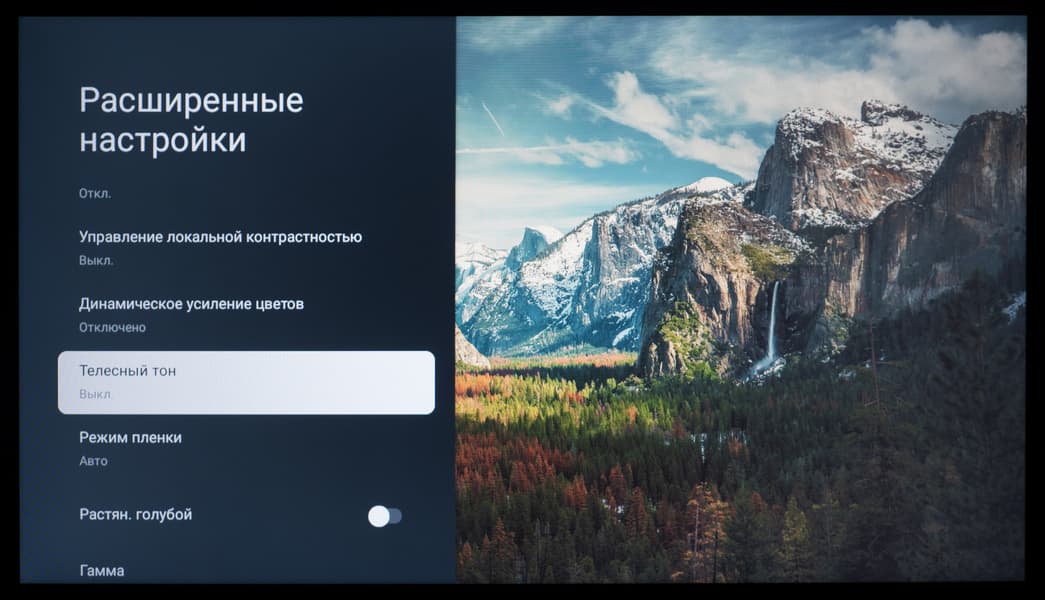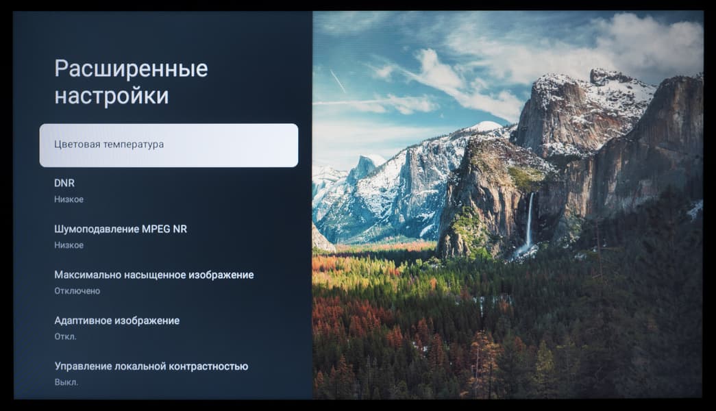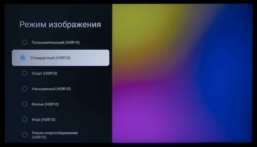 В настройках изображения в названии каждого заводского пресета появляется приписка HDR10, а возможности ручной настройки большинства параметров, ответственных за цветопередачу, остаются доступны для пользовательских правок.