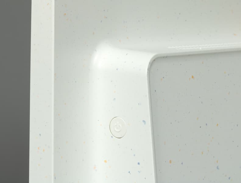 Дополнительная клавиша управления питанием, сливающаяся с белым корпусом, выведена на одну из граней с задней стороны. Она позволяет включить телевизор, полноценно выключить или перезагрузить при долгом удержании — на случай проблем при работе с ОС Google TV.