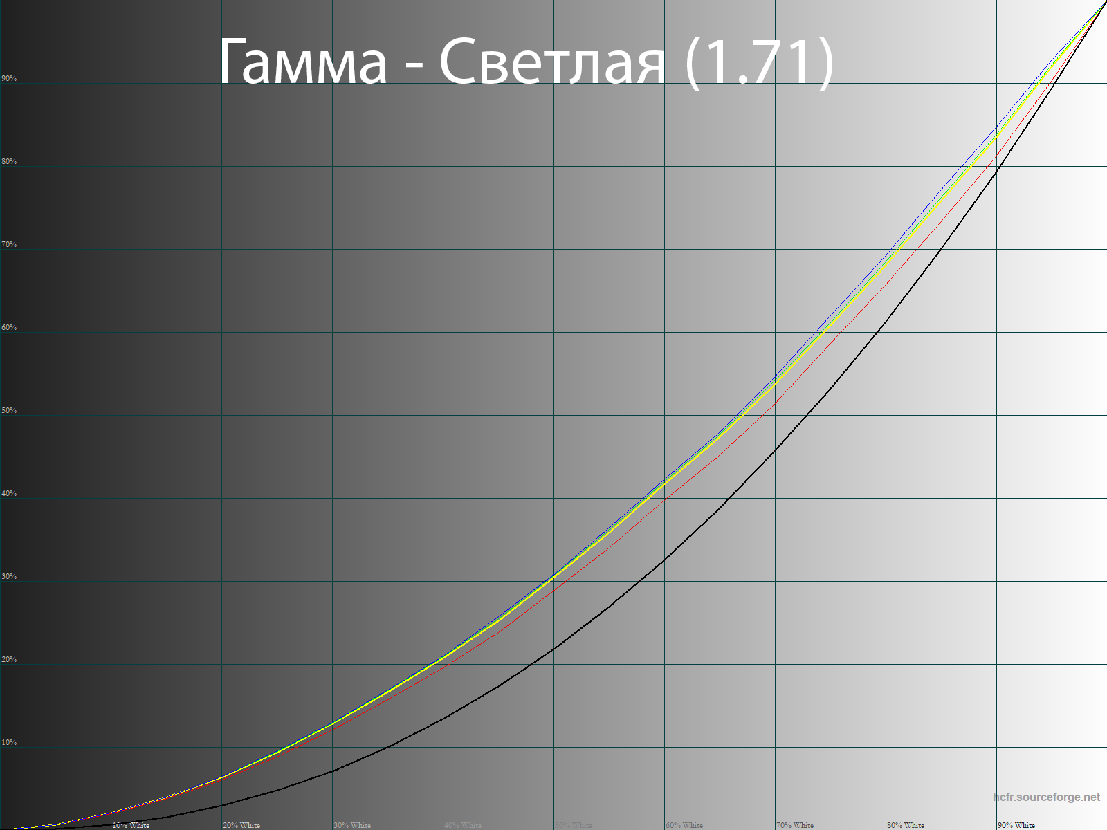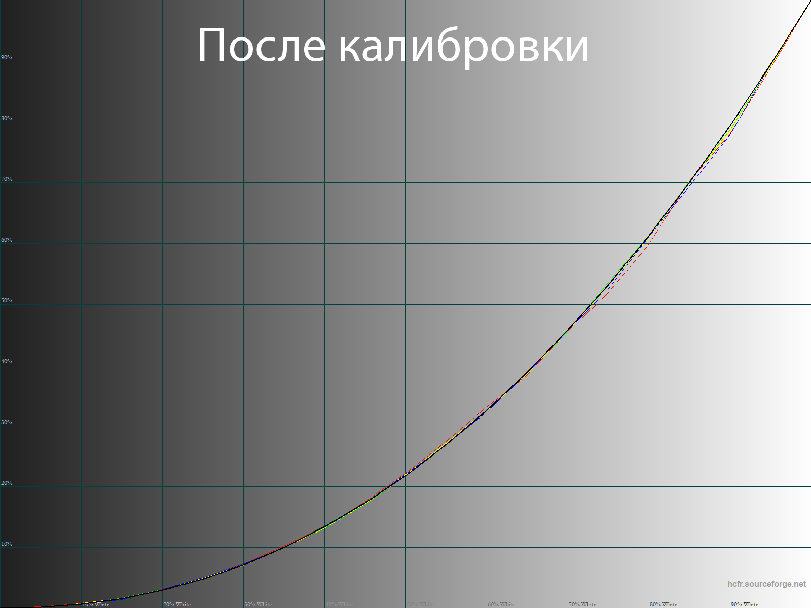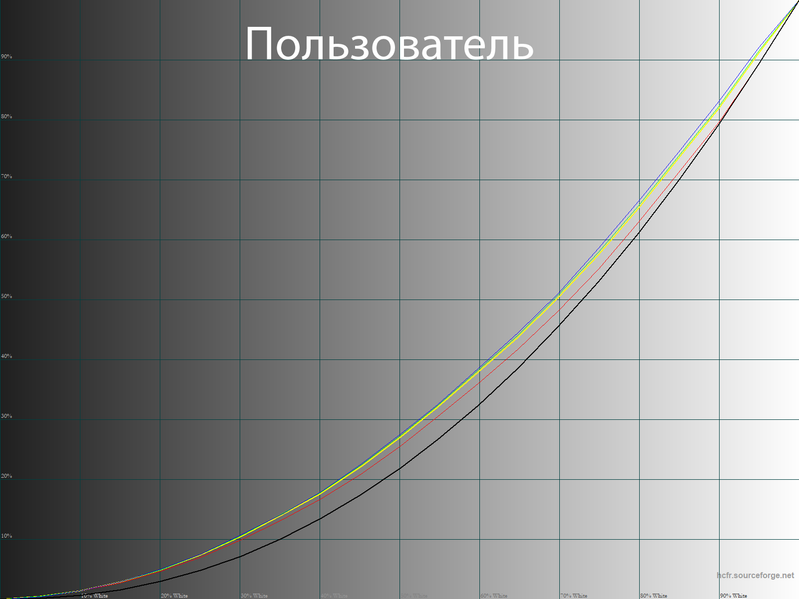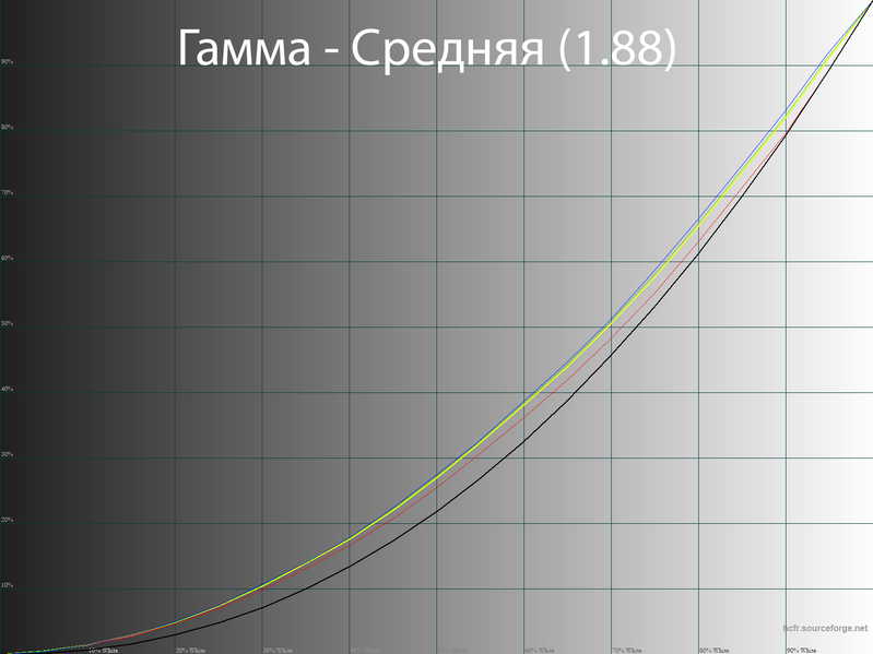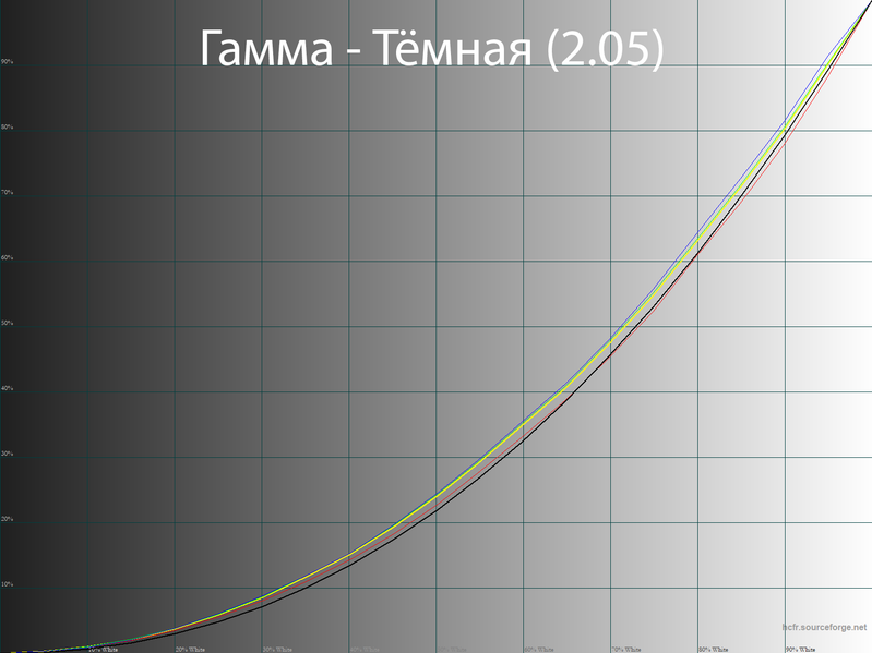 Правки в LUT видеокарты позволили скорректировать недостаточно корректные гамма-кривые и выйти на необходимый уровень точности. Среднее значение гаммы составило ровно 2,2: контраст верный, различимость теней адекватная, без излишеств.
