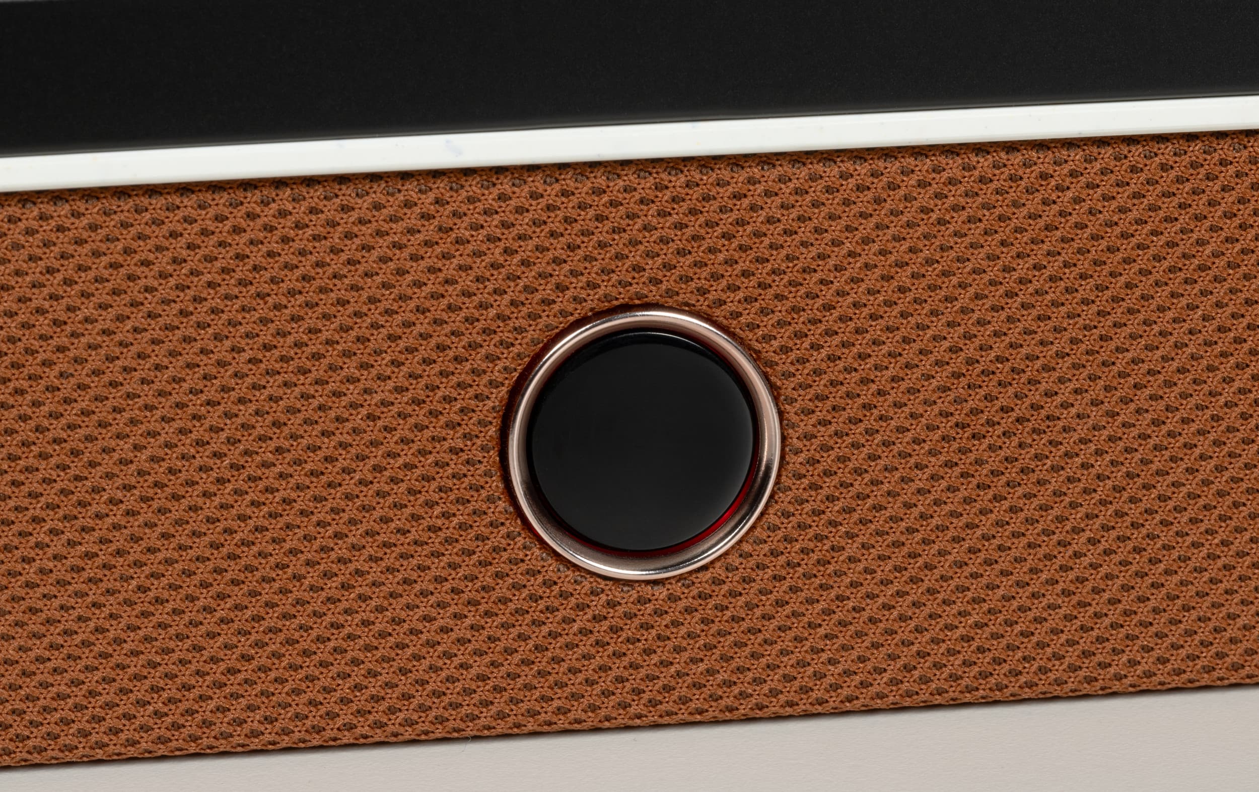 Встроенная акустическая система телевизора построена по стереофонической схеме с использованием двух динамиков с заявленной общей мощностью 12 Вт (два по 6 Вт). Оба диффузора под определенным освещением проглядывают за тканевой обивкой спереди.