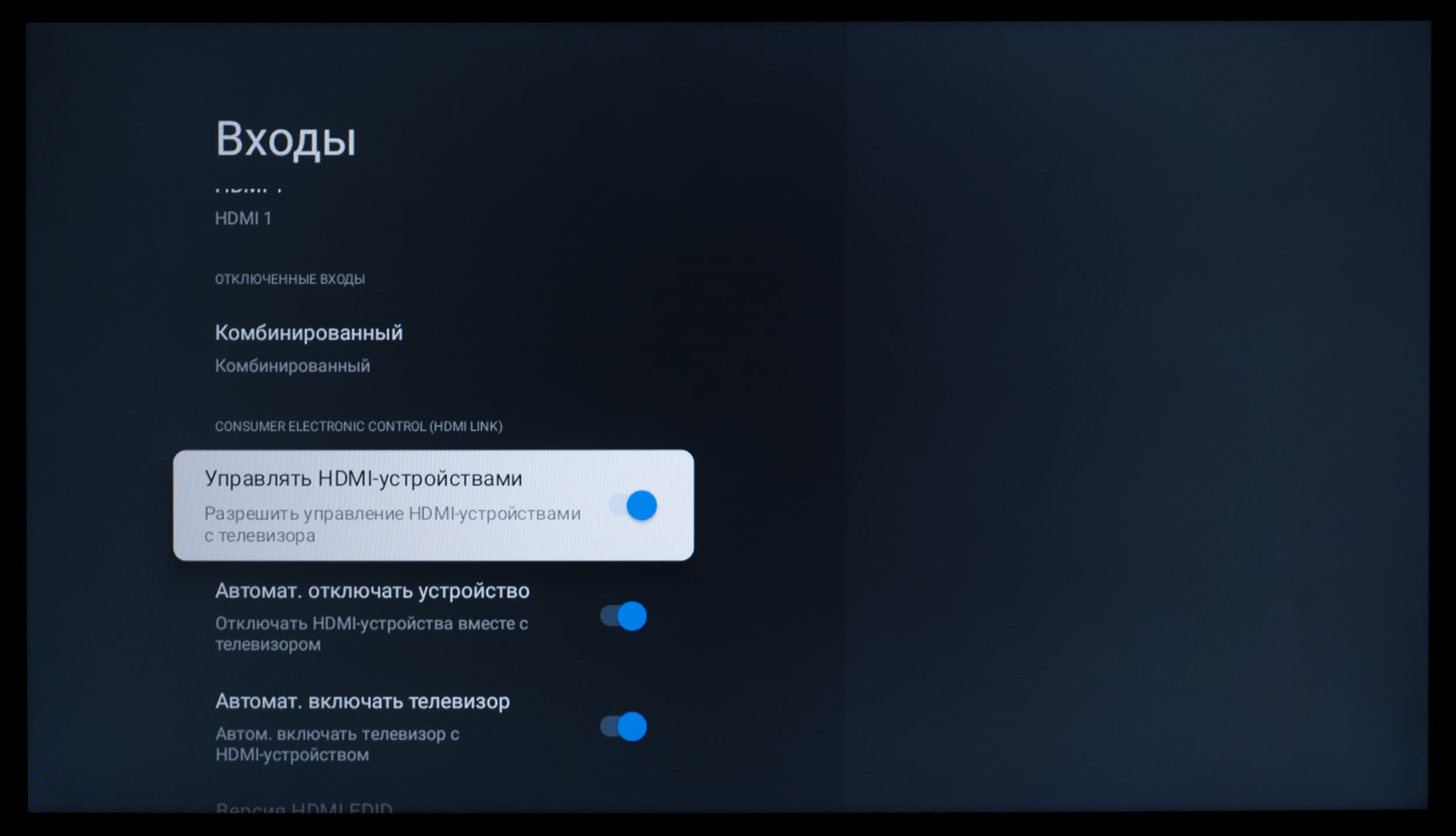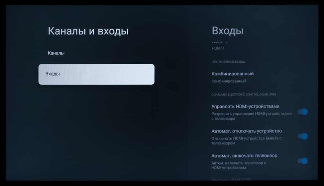 У телевизора есть поддержка управления по HDMI — функция HDMI CEC. В нашем случае она прекрасно работала с ТВ-приставкой Xiaomi Mi Box S и ее стандартным пультом ДУ. Можно и, наоборот, пультом ТВ активировать, настраивать и выключать саму приставку.