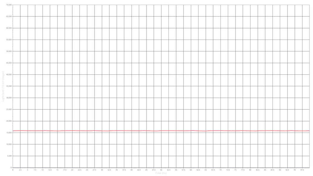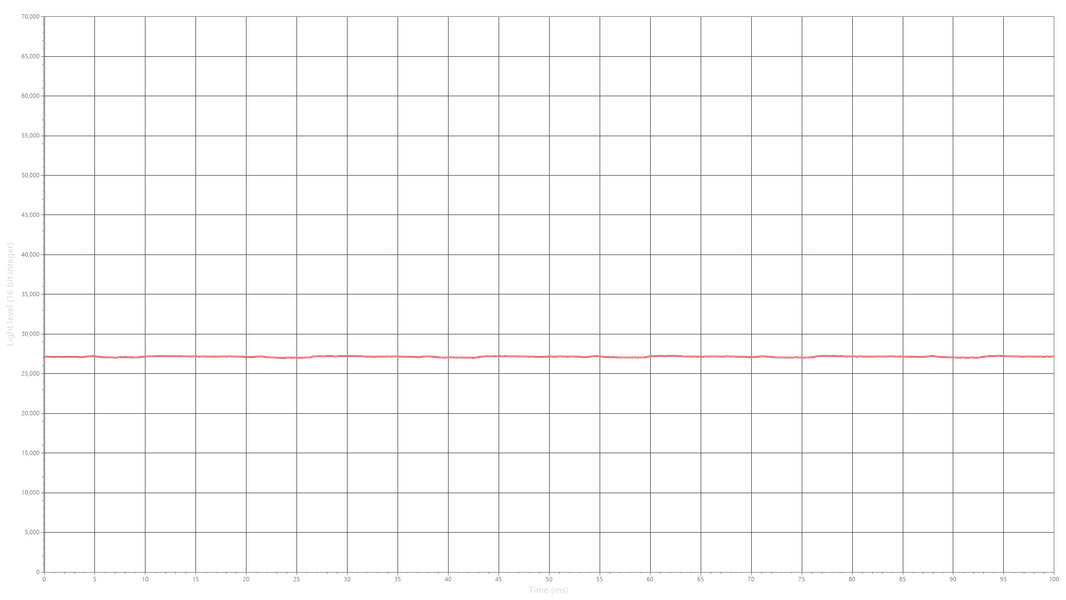 На любом уровне яркости видимое мерцание отсутствует, его не выявляет и тест на стробоскопический эффект.