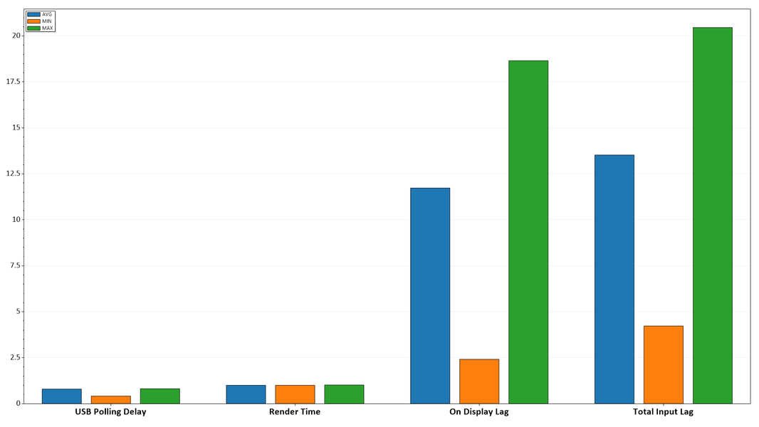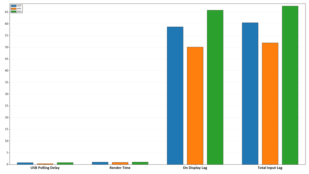 Также мы определяли полную задержку вывода от переключения страниц видеобуфера до начала вывода изображения на экран. В итоге при подключении по HDMI задержка вывода изображения в случае сигнала 1920×1080 и 60 Гц составила 59 мс при заводских установках и снижалась до 12 мс в среднем при активированном «игровом режиме» либо автоматическом ALLM.