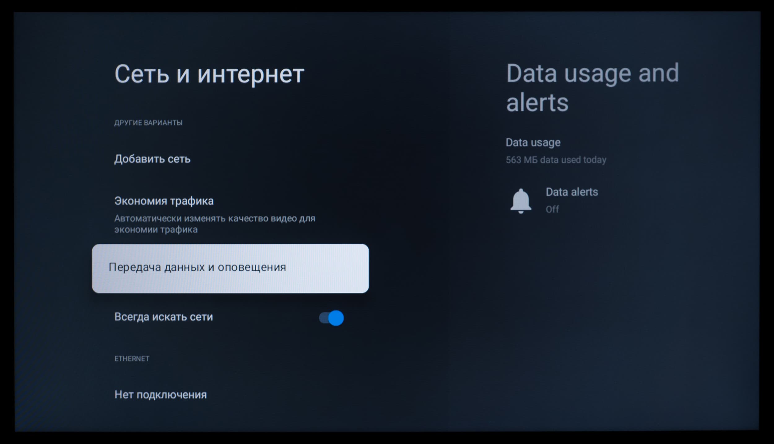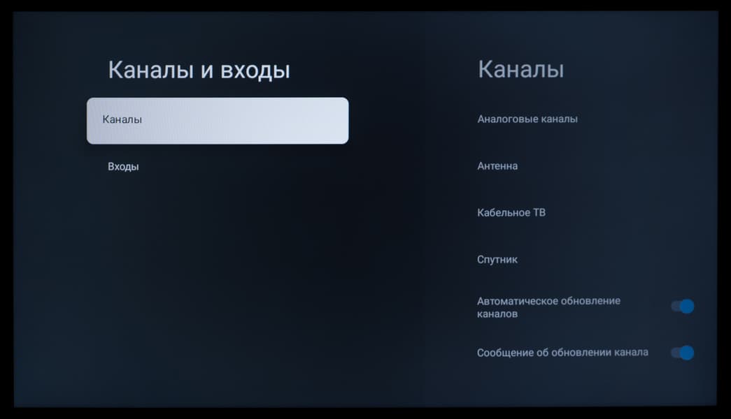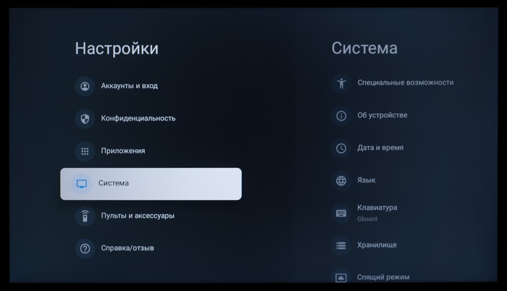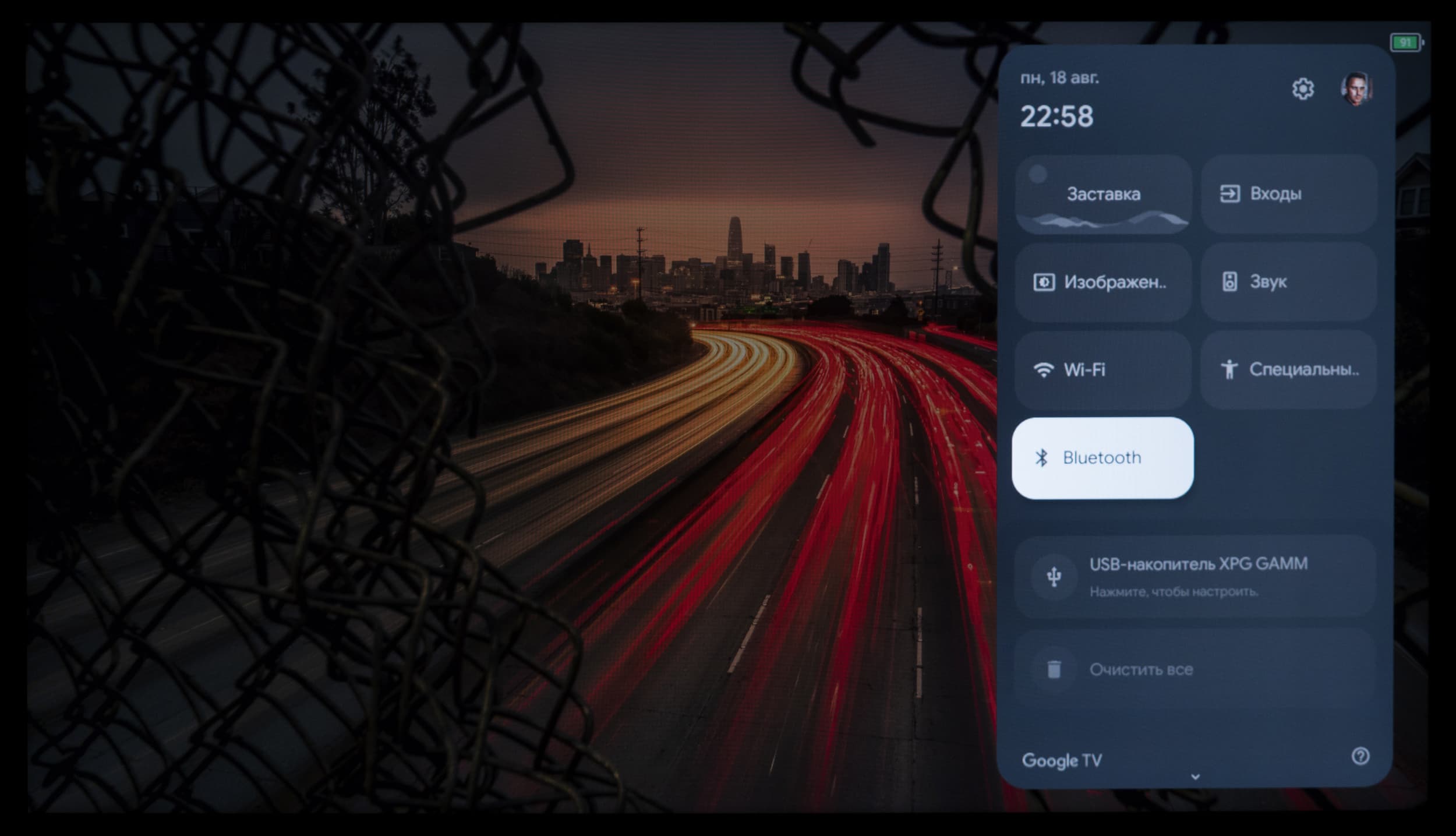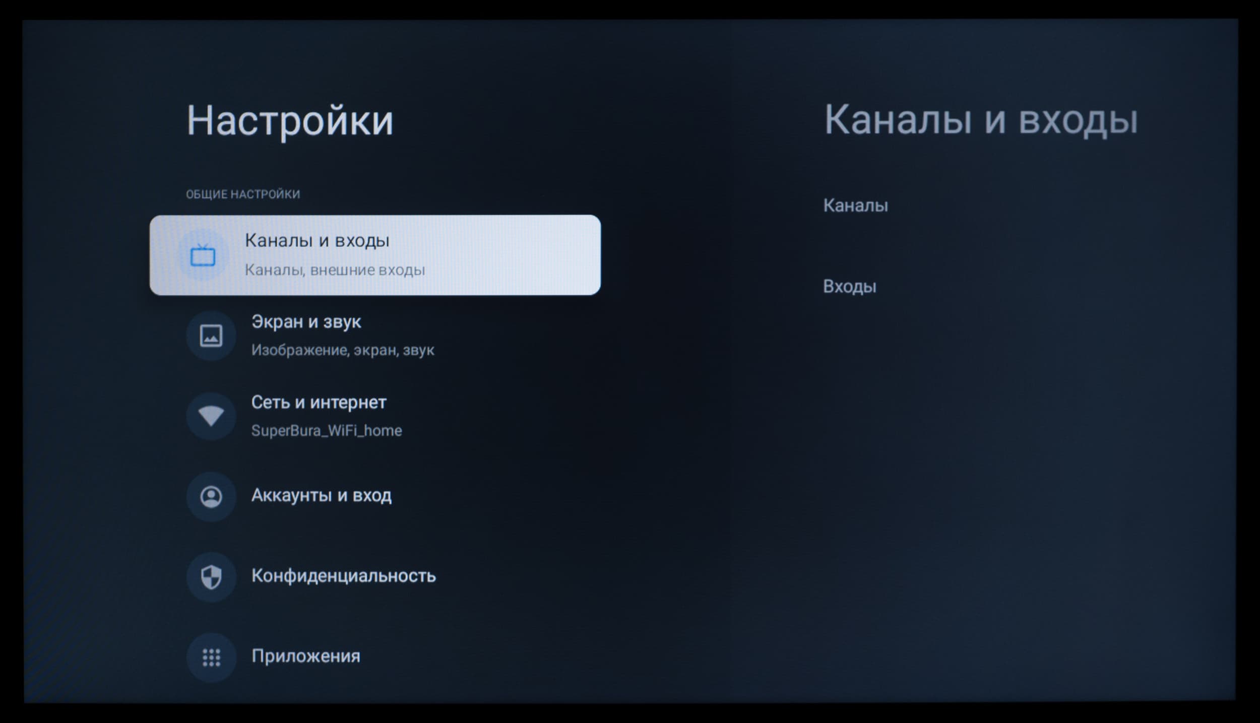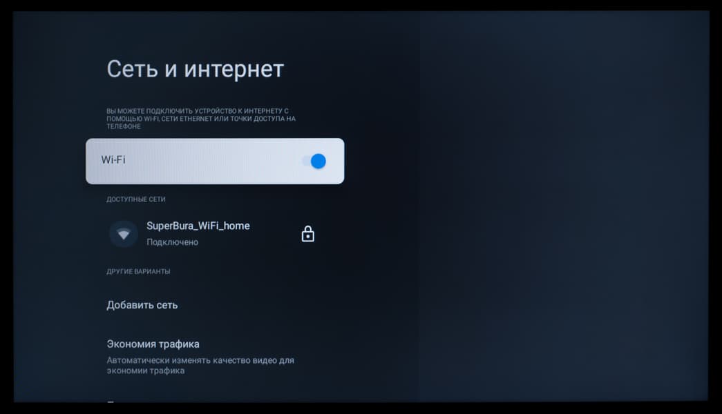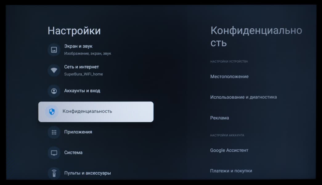Основной блок настроек изображения и звука, доступный при работе с любым подключением и при выводе любого контента, представлен в стандартном виде для устройства с Google TV — изначально это блок быстрых настроек, выводимый почти во всю высоту экрана в его правой части.